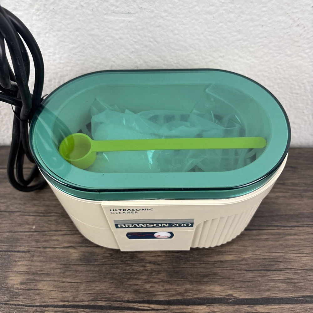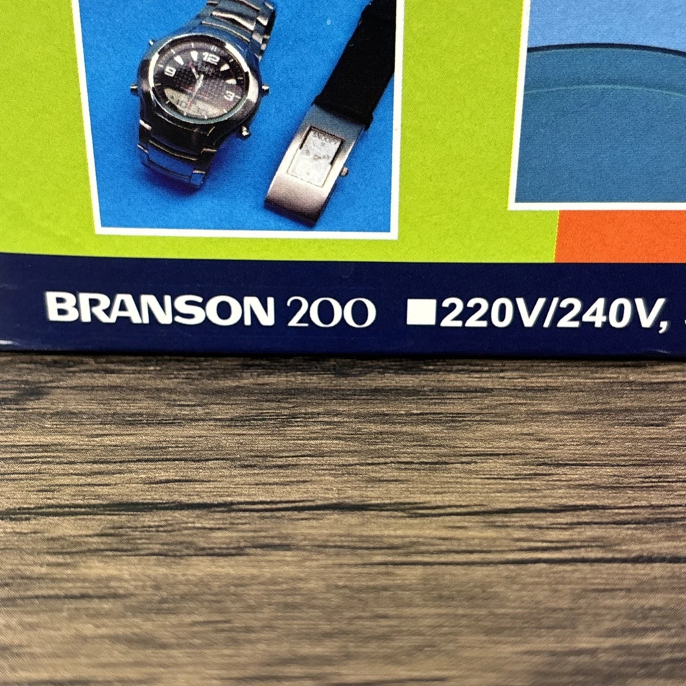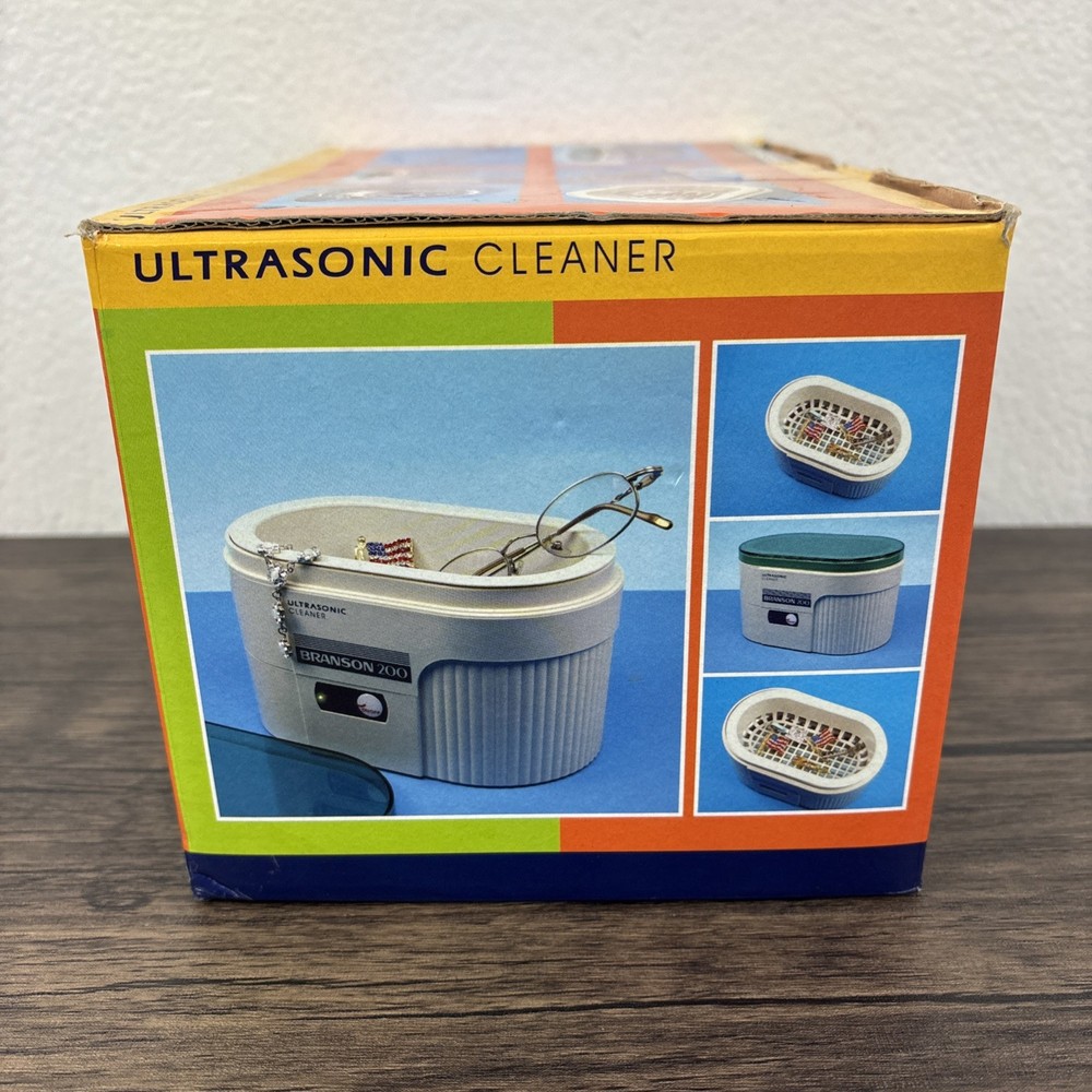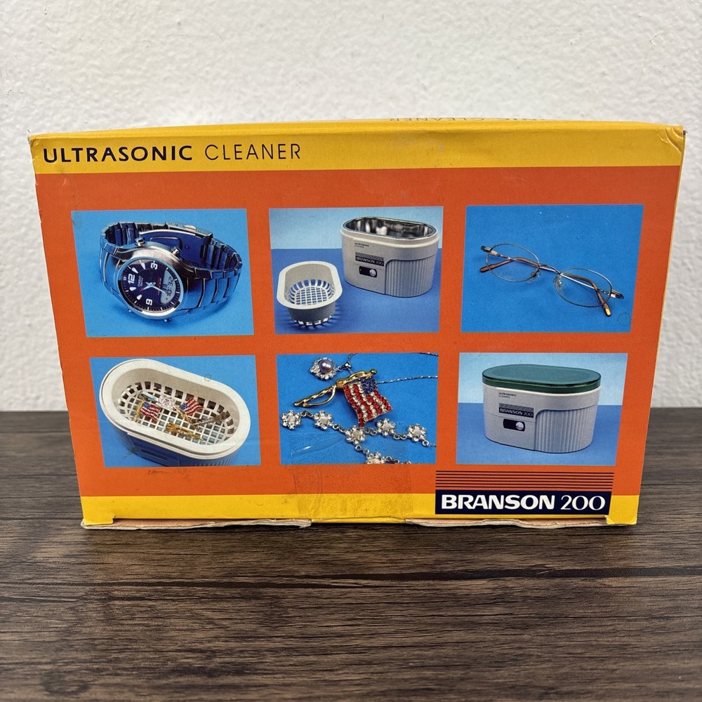 Branson 200 Ultrasonic Jewelry Cleaner Complete with Instructions in Box New NOS. Brand new and unused in open box. Shipped from a smoke free home.