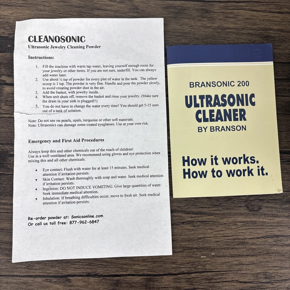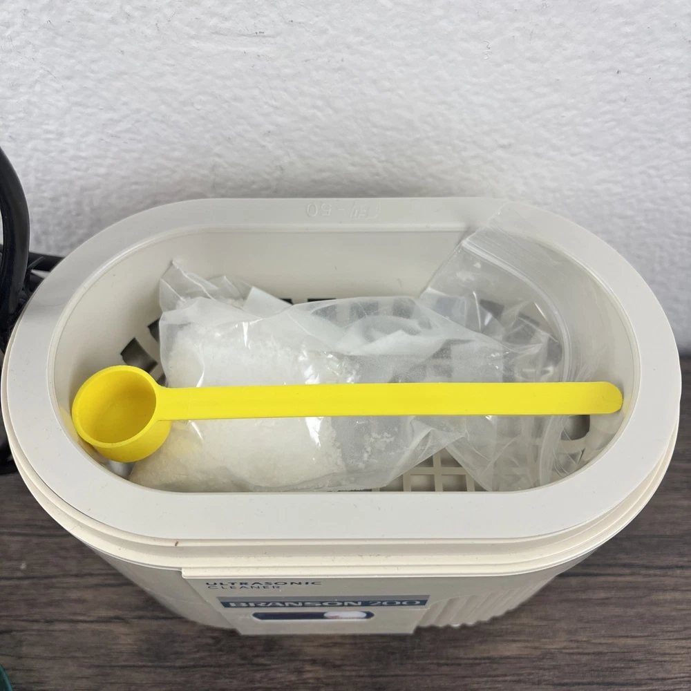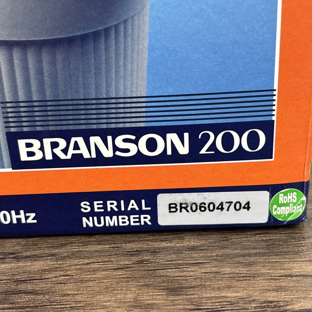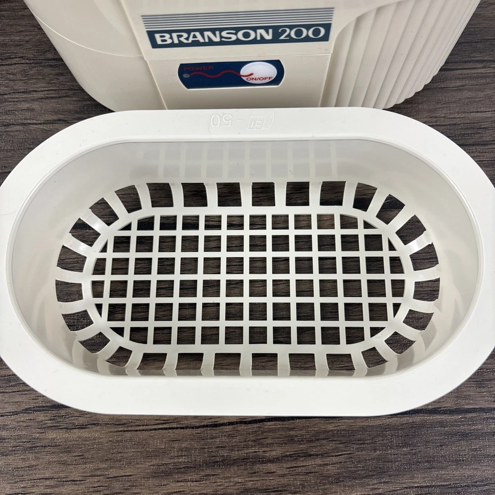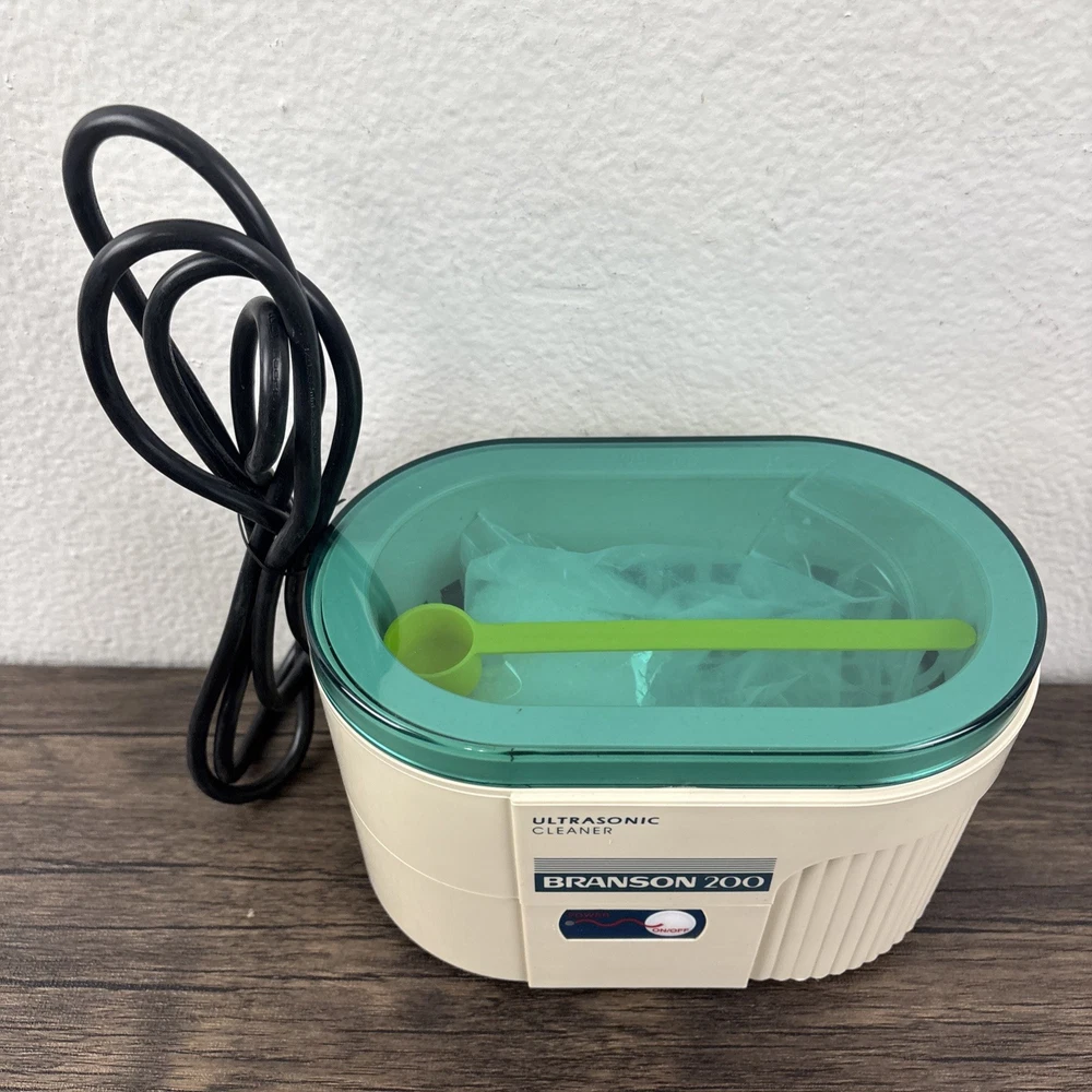 Branson 200 Ultrasonic Jewelry Cleaner Complete with Instructions in Box New NOS. Brand new and unused in open box. Shipped from a smoke free home.