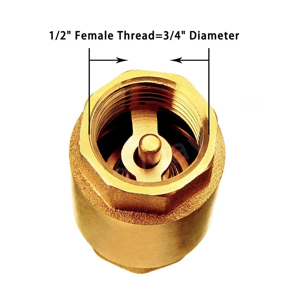 Product Size:1/2" NPT Thread Female This valve is used to prevent the back flow of fluids Maximum pressure rating 200 psi,200 WOG (water, Oil, gas) This valve has a brass body with a stainless steel spring for long-lasting durability Brass for corrosion resistance, ductility at high temperatures, and low magnetic permeability
