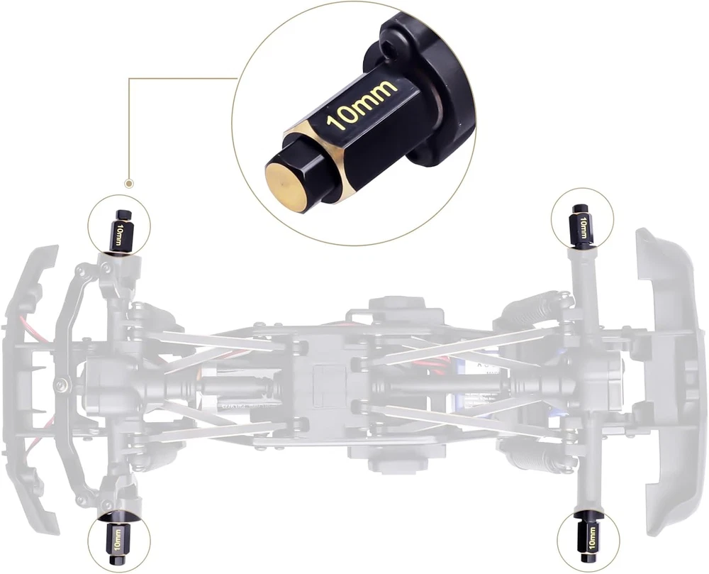 ✔Compatible with 1/18 Traxxas TRX4M Bronco, TRX4M Defender RC Crawler Cars ✔Extending the track width mm,for a wider stance and greater control and stability ✔The Upgrades for TRX4 Brass Wheel Hex Hubs is CNC machined, High precision, easy to install, ideal replacement of stock plastic parts. ✔Package Include: 4x Brass Extended Wheel Hex Hubs, 4x Pins, 4x Nuts, 4x Washers, 1x Small Cross Wheel Wrench Note: The color of the item may vary slightly due to photography and your own computer /Phone Please allow some little manual measurement error. Customer Satisfaction Guarantee If you are not completely satisfied with our products, please do not hesitate to contact us to request a refund or exchange! Note: Check your specific model's manual for compatibility,or Contact us.