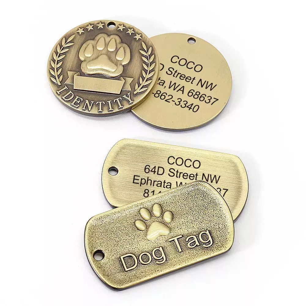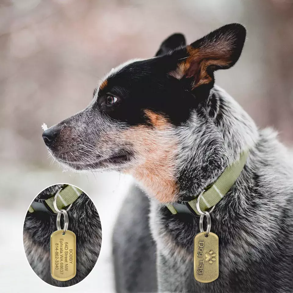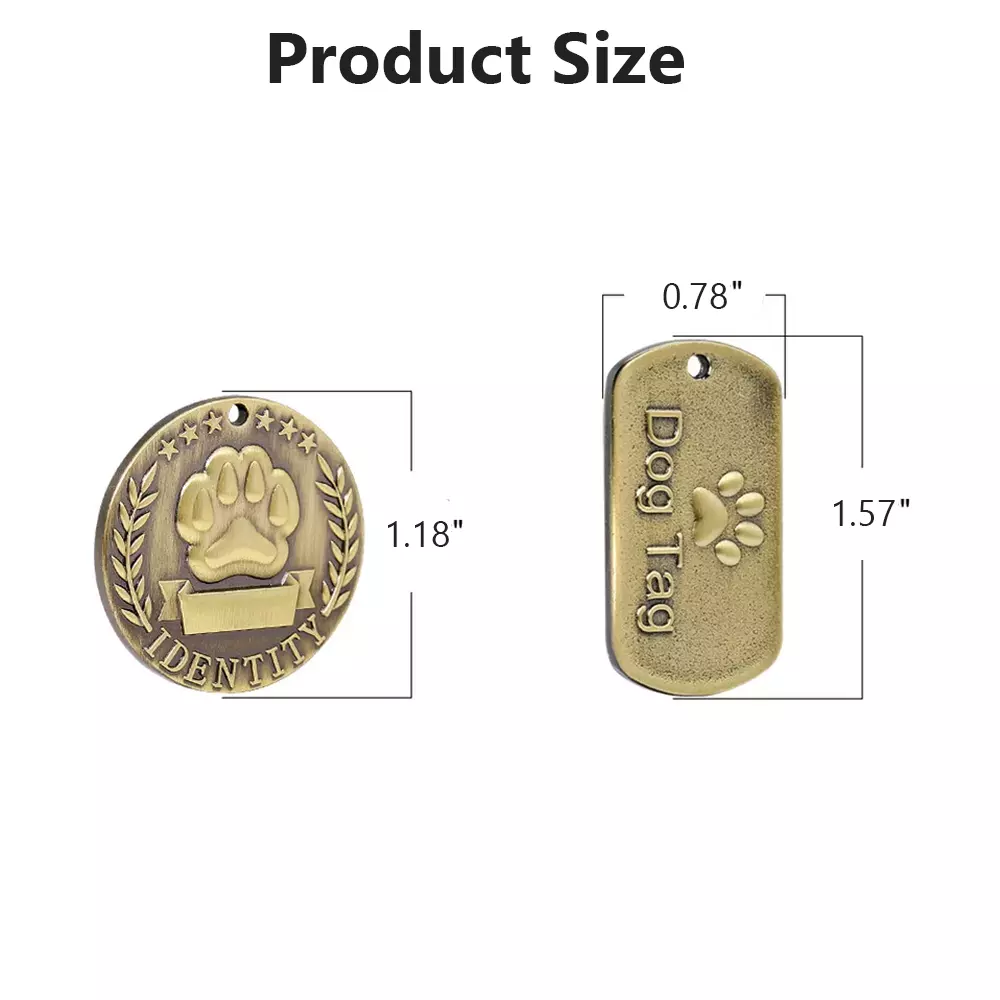 Brass Personalized Dog Tags Military Custom Engraved Pet Name ID Tag For Collar Package Includes: 1 Pcs Pet ID Tag AFTER PURCHASE PLEASE SEND ENGRAVING INFORMATION THROUGH EBAY MESSAGE NOTE! Custom Engraved Pet tags! A maximum of 3 lines and 16 fonts per line can be engraved on the tag. SHAPES AND SIZES AS FOLLOWS: Round: 1.18" x 1.18" Rectabgle: 1.57" x 0.78" Weight: 0.3 OZ Note: Please allow slight dimension difference due to different manual measurement. Due to the shooting angle and the display, the goods may have a color difference from the picture. Thank you for your kindly understanding. Guarantee • Fast & Free Shipping on ALL Orders We believe that you should enjoy the benefit of FREE Shipping on all of your orders within the all Continental States. That's why no matter what you buy, we will ship it for FREE, so the price you see is exactly what you pay. No hidden fees or shipping charges. • Most Items Delivered in 2-6 Business Days When you're buying from us, you deserve fast and reliable service. That's why we have a "Same Business Day" processing in place and wide range of shipping options to choose from in order to deliver your package as soon as possible. *2-6 business days’ time-frame is NOT GUARANTEED and was statistically calculated based on all previous orders. • ALL Orders Placed On Business Days Before 4 PM EST Will Be Shipped Same Day Why wait a day or more for your order to ship? All orders placed before 4 pm EST, Monday to Friday, ship the SAME day. Orders placed on Friday after 4 pm EST, Saturday and Sunday will be shipped the next Monday (if business day). We are closed on all Federal Holidays. • 30 Days Money Back Guaranteed! We will gladly accept your return within 30 days of the original purchase. Please, see below for our full Returns Policy. Shipping • Most orders arrive at your door in 2-6 Business Days FOR FREE! • Place your order before 4 pm EST and it will be shipped the same day, Monday to Friday, excluding major holidays. • We will ship your order to your PayPal Verified address provided. • Please verify your address and make sure that it is your current address before making your payment. Any address change requests after your payment CANNOT be guaranteed. • We do not include invoice with our shipments. Feedback • Positive feedback is automatically done once your order is shipped. • We appreciate all our customers to post a Positive Feedback and "Five-Star" scores. • If for any reason you are not satisfied with your purchase. Please contact us via eBay Message and We will do our best to satisfy you! Payment & Cancellation • Instant PayPal payment is required. • We also accepts Visa, MasterCard, Discover, and American Express through PayPal guest checkout. • Sales tax is charged by eBay based on your shipping address. • To uphold a shipping speed, your order will be processed almost immediately. If you change your mind after your payment is confirmed, we will do our best to stop the order, however, we CANNOT guarantee the cancellation. Return • We will gladly accept your return within 30-Days of the original purchase. • Our return process is simple and fast: 1. We will pay for the return shipping label if you received a broken/defective item(s) or the item(s) doesn't match our description. As soon as we receive the item(s) back we will process a refund for the item(s)which was/were returned. 2. You will be required to pay for the return shipping label if you changed your mind or no longer need the item(s). As soon as we receive the item(s) back we will process a refund for the item(s) which was/were returned. • If we'll receive a package back because of the incorrect address, the refund will be processed excluding our shipping cost. Contact Us • Send us a message on eBay and we will answer within 24h on business days. On Aug 20, 2024 at 04:35:10 PDT, seller added the following information: