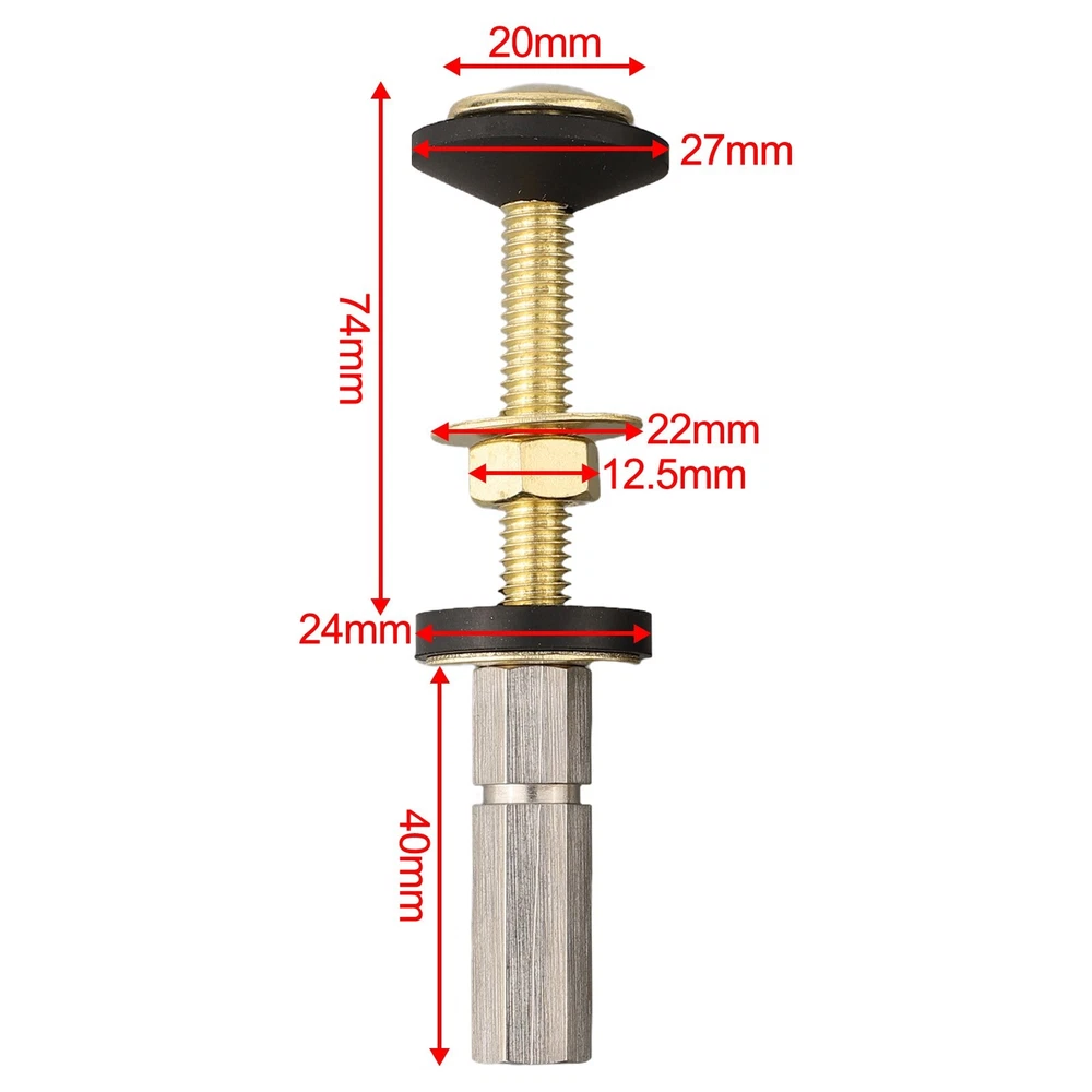 Product Description Features: * Fit: These toilet tank to bowl bolts are designed to fit most standard toilets, providing a solution for installation and securing your toilet. *Easy Installation: With the extra long nut included, installation is a breeze. remove the old bolts and replace them with our toilet tank to bowl bolts without the need for any special tools. *Secure and Reliable: The locking nut included in the kit ensures a secure and tight connection between the toilet tank and bowl, eliminating any potential leaks or movement. *Cost-Effective Solution: Instead of hiring an expensive plumber, our toilet tank to bowl bolt kit allows you to easily fix leaky problems and save on costly repairs. *Material: Made from metal and brass, these bolts are built to last, resisting wear and tear, rust, and , long-lasting performance. Specifications: *Product Name:Toilet Tank to Bowl Bolts *Material: Metal and Brass *Size:As Picture Show *Color:Gold Package Content: 2x Bolts Note: 1. The real color of the item may be slightly different from the pictures shown on website caused by many factors such as brightness of your monitor and light brightness. 2. Please allow slight manual measurement deviation for the data. Payment Payment must be completed within 5 days. If you have any problems about payment, please contact us via ebay message. Delivery details We only ship to confirmed ebay Order addresses. Please comfirm that your Order address is in line with your shipping address. Please kindly note that the c ombined shipping is not provided because the shipping fee is calculated by weight. Also, the each additional item means exactly the the same color and size. It takes about 7 -15 working days to US; about 10-30 working days to other countries. Transit time may be a little delayed because of the bad weather and customs inspection . If you do not receive your item within 30 working days since payment finished, please contact us immediately for further assistance. Contact us We strive for 100% customer satisfaction! Positive Feedback is very important to us. If you have any questions, p lease feel free to contact us via "Ask seller a question" . We will reply your email within 24 working hours.