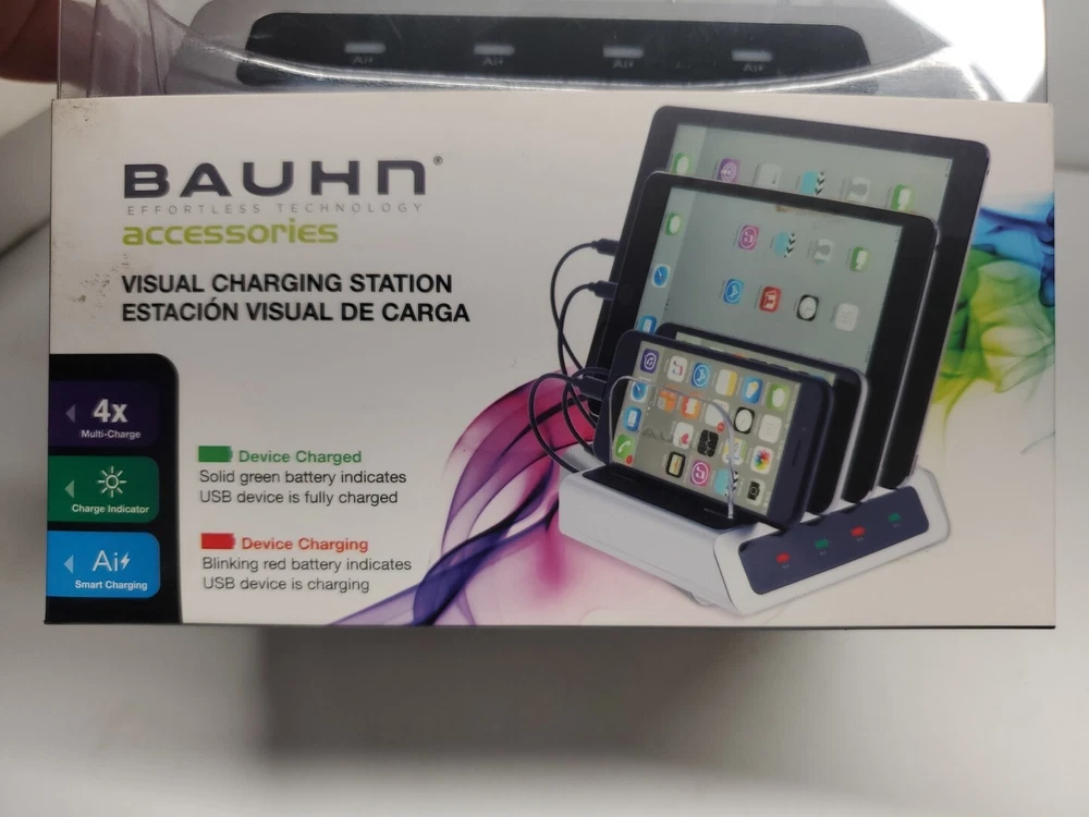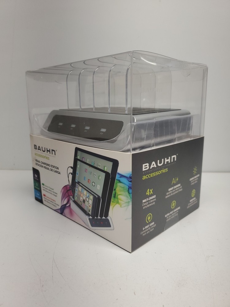 The Brauhn Visual Charging Station is the must-have accessory for all your USB compatible devices. This charging dock features four ports, a 5ft power cord, and dual USB connectivity for convenient charging at your desk. With its sleek design, it is a perfect fit for any modern workspace. The Brauhn Visual Charging Station is compatible with all USB devices and is a great addition to your collection of cell phone accessories. Its compact size and easy connectivity make it a hassle-free way to keep your devices charged. Get your hands on this charging station today and experience a clutter-free and organized workspace!