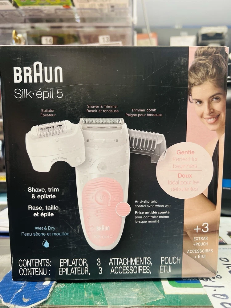 Braun Silk 5 Cordless Women Epilator Shaver Trimmer Wet & Dry SES 5-620. Used, tested it works. Item: S2(12) The Braun Silk-épil 5-620 is perfect for beginners as it comes with a setting for gentle hair removal. Enjoy weeks of salon-smooth skin thanks to Micro-Grip technology with 28 tweezers that removes hairs as short as 0.5mm, giving you weeks of smooth skin, not just days. The shaver and trimmer head gives you added options for sensitive areas and the epilator for women is 100% waterproof, which means you can epilate in the bath or shower for a painless experience. Box includes: 1 X Epilator 1 X Shaver Head 1 X Trimmer Head 1 X Pouch 1 X Cleaning Brush 1 X Charger