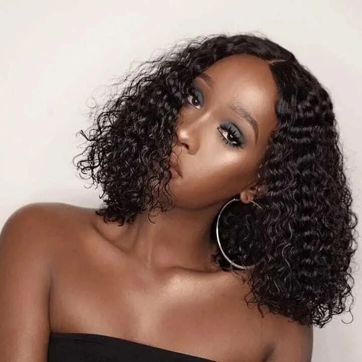 Brazilian Deep Wave 13x4 Lace Front Wig Short Bob Remy Hair Preplucked