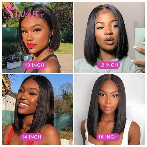Straight Bob Wig Lace Front Human Hair Wigs For Women Brazilian Human Hair HD Lace Frontal Wig 13X5X2 Glueless Frontal Human Wig Bob Wig Lace Front Human Hair Wig Like Her Hair Bob Lace Front Wig Lace Part Wig , Affordable Good Quality Human Hair , Soft And Full , It Is Lustrous And Nice In Any View ,Easily Install And Caring In Your Diary Life. 100% Human Hair Natural Pre Plucked Hairline With Baby Hair Hair Wigs Natural Looking Wigs Live Longer Than a Year, Pre-plucked Natural Hairline With Baby Hair Around ,Natural Scalp After Installing. Easy To Restyle Like Her Straight Bob Wig Lace Front Human Hair Wigs ,Enough Full and Lustrous Hair, Absolutely Smooth From the Top to the End., Can Make Ponytail & Bun & Half Up Half Down. U Can Style it as You Like Transparent lace frontal wig 4 Combs Totally(Front, Back, And Two Sides), Healthy, Breathable Neat Net, Adjustable Caps More Suitable For You