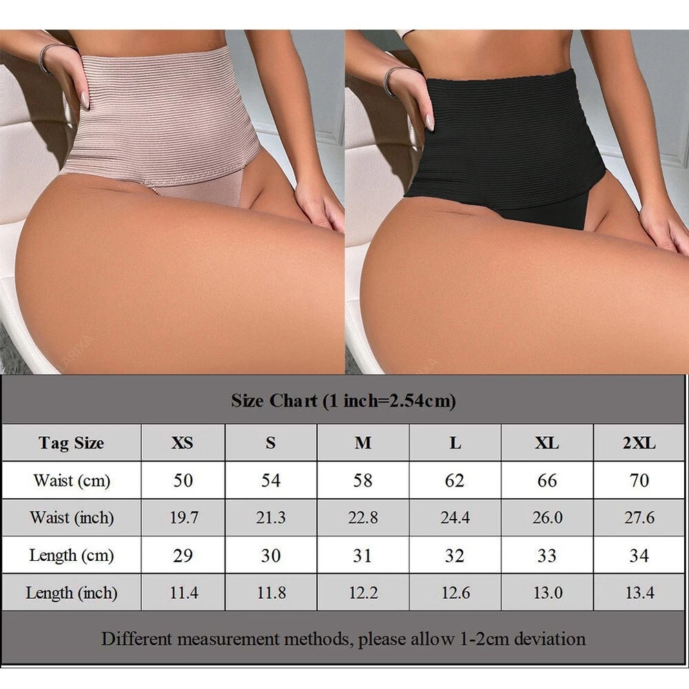 Breathable Flat Paunch Shaper Thong for Women's High Waist Control Pinkish Gray DESCRIPTION Details: *Tag Size:XS-2XL,Size reference provided below. Size Chart (1 inch=2.54cm) Tag Size XS S M L XL 2XL Waist (cm) 50 54 58 62 66 70 Waist (inch) 19.7 21.3 22.8 24.4 26.0 27.6 Length (cm) 29 30 31 32 33 34 Length (inch) 11.4 11.8 12.2 12.6 13.0 13.4 Different measurement methods, please allow 1-2cm deviation * Item Fabric: Nylon * Item Color:Black,Pale pinkish gray(As pictures show) * Item Features:Womens High Waist Control Shaper Thong ,Breathable Comfort Elastic, Intimates Flat Paunch * Item Condition:Brand New * Item Description: 1) Applicable Gender:Female 2) Clothing Length:Regular 3) Elasticity:Moderate elasticity 4) Pattern:Solid Color 5) Style:Sexy 6) Suitable Season:Spring,Summer,Autumn,Winter 7) Application:Vacation,Holiday,Daily,Home * Package Contents: 1*Thong(Other items not included) How to choose proper size? 1) Use garment compare with the sizes 2) Choose larger sizes if your sizes are same as the flat measurement size chart Notes: 1, The real color of the item may be slightly different from the pictures shown on website caused by many factors such as brightness of your monitor and light brightness. 2, Please allow slight (±2Cm)manual measurement deviation for the data. POLICES Shipping Payment WARRANTY We only ship to confirmed ebay Order addresses. Please comfirm that your Order address is in line with your shipping address. Please kindly note that the c ombined shipping is not provided because the shipping fee is calculated by weight. Also, the each additional item means exactly the the same color and size. It takes about 7 -15 working days to US; about 10-30 working days to other countries. Transit time may be a little delayed because of the bad weather and customs inspection . If you do not receive your item within 30 working days since payment finished, please contact us immediately for further assistance. Payment must be completed within 5 days. If you have any problems about payment, please contact us via ebay message. We strive for 100% customer satisfaction! Positive Feedback is very important to us. If you have any questions, p lease feel free to contact us via "Ask seller a question" . We will reply your email within 24 working hours.