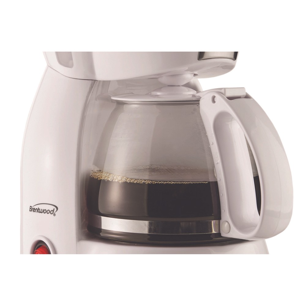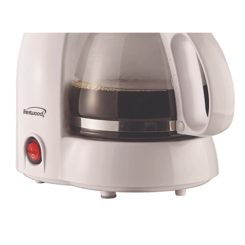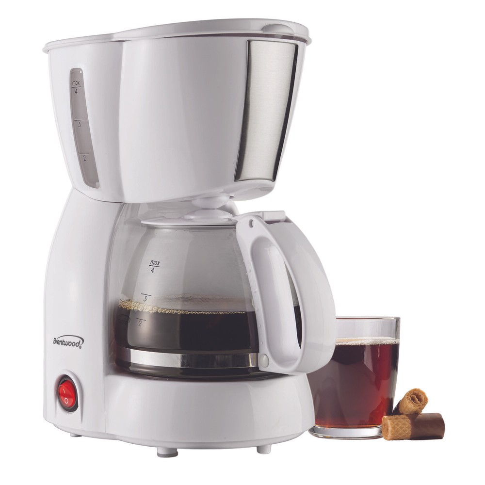 Use the Brentwood TS-213W 4 Cup Coffee Maker to make a perfect pot of coffee for you, family, friends, and coworkers. Simply place the grounds, add a cup of water and hit the power button to start brewing. Warming plate keeps your coffee hot. Save money and help protect the earth using the included reusable mesh filter basket. Use the included reusable scooper to choose the number of cups and strength of your coffee. Never guess with the built-in water level window. Our coffee maker is entirely BPA Free. Removable filter basket makes clean up a breeze.