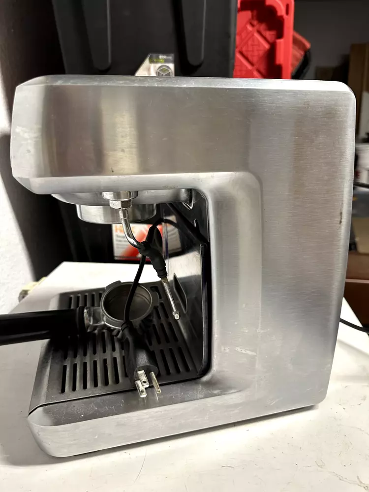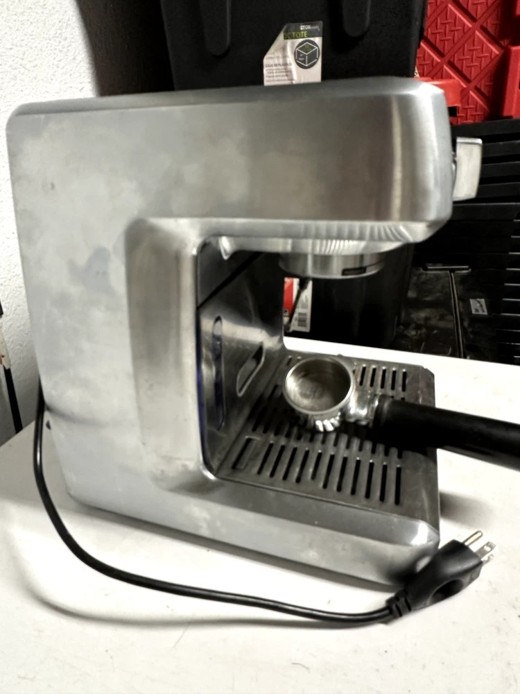 Breville espresso maker 800ESXL(model). Espresso maker with milk frother. Comes with accessories. single shot, double shot, and a pod compatible insert. Internal (removable) water reservoir. It works well, tho the power button is finicky sometimes. I bought used and used it for a few months. I've given up coffee so I don't need it anymore. Asking $130 OBO