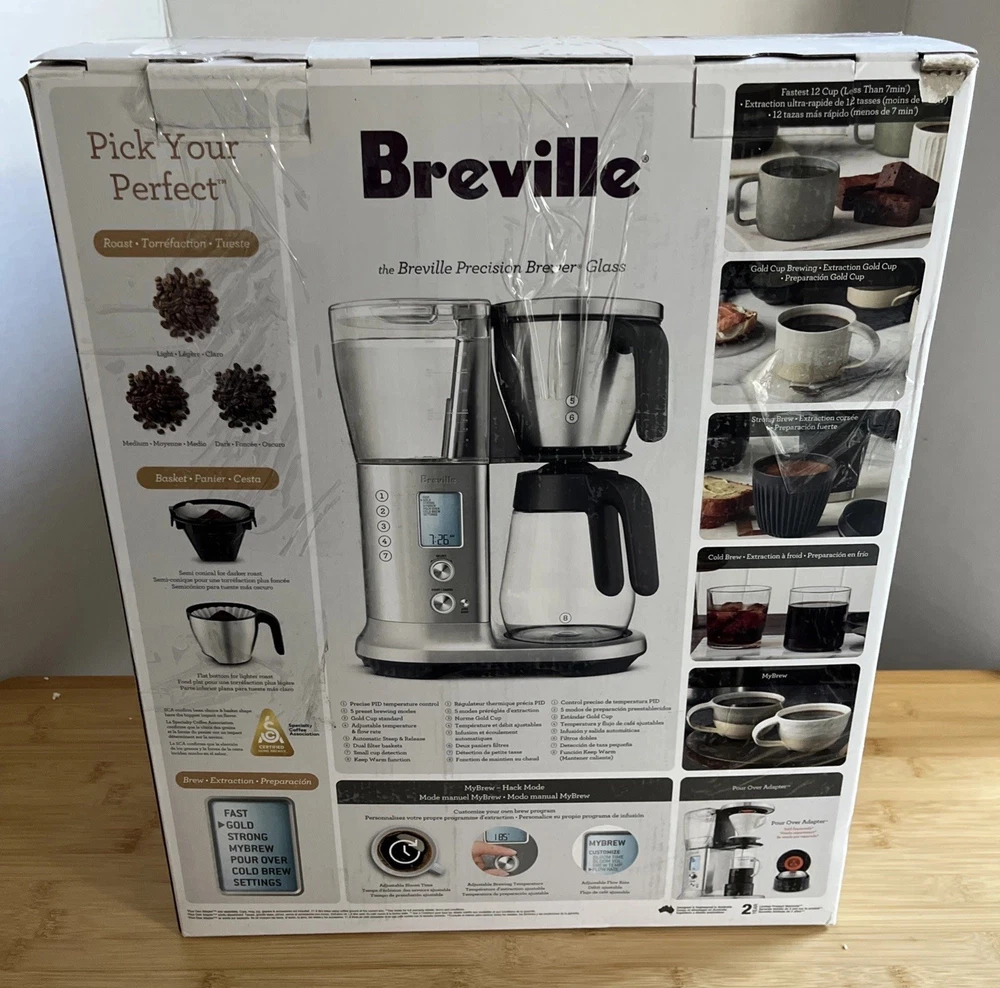 Breville BDC400BSS Precision Brewer Drip Coffee Maker, Brushed Stainless Steel, Glass Carafe The box is distressed