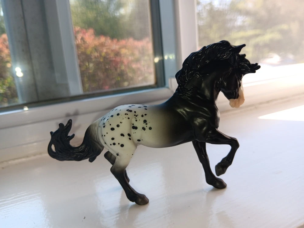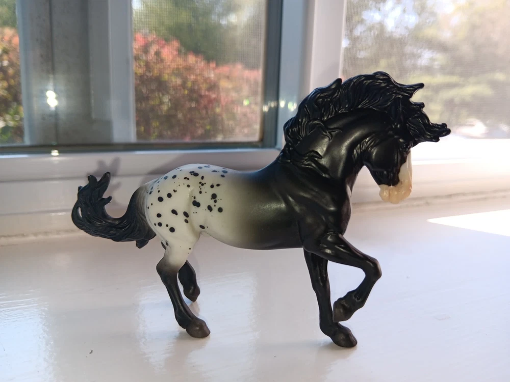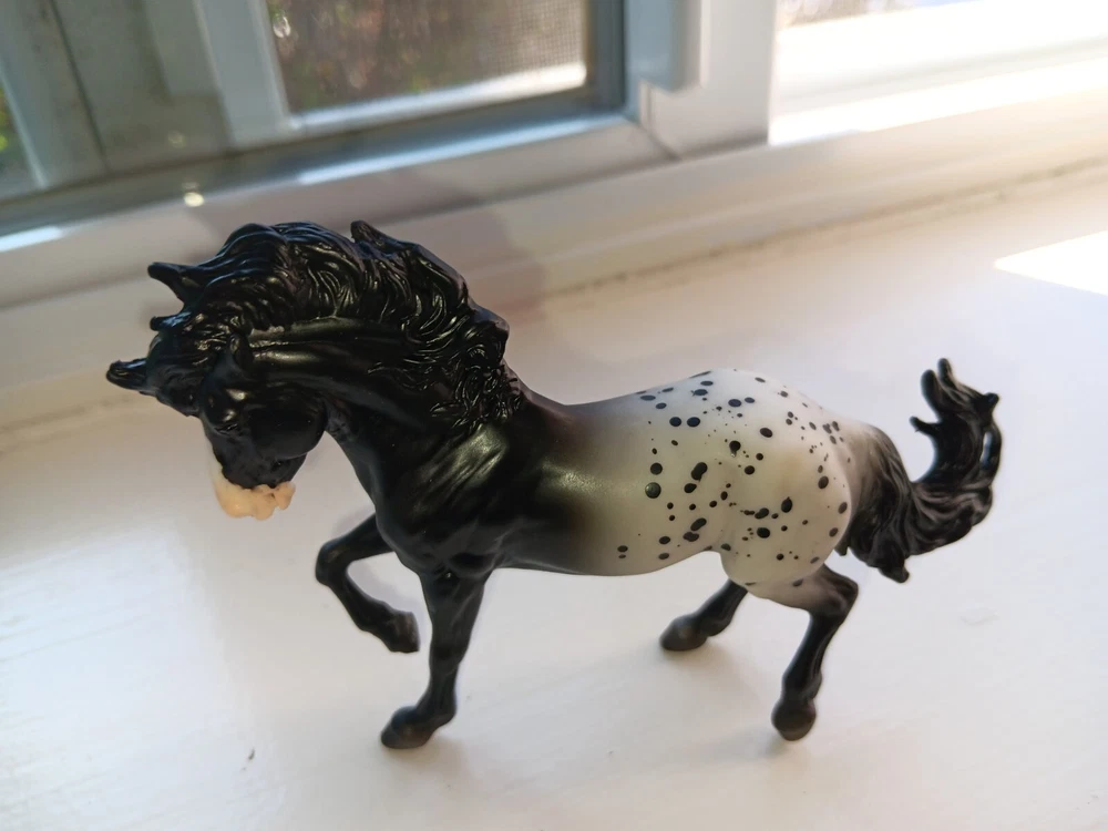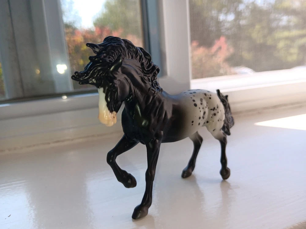 New mold!! Breyer 2024 TSC Limited Fireheart black Appy. Gorgeous boy!! Stablemate size. HTF!! Only removed for pics Average EBAY price: $39!!
