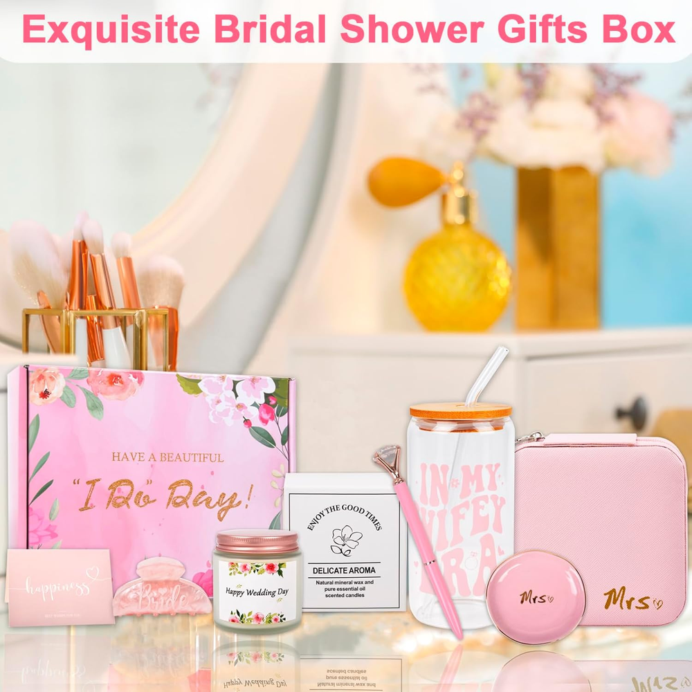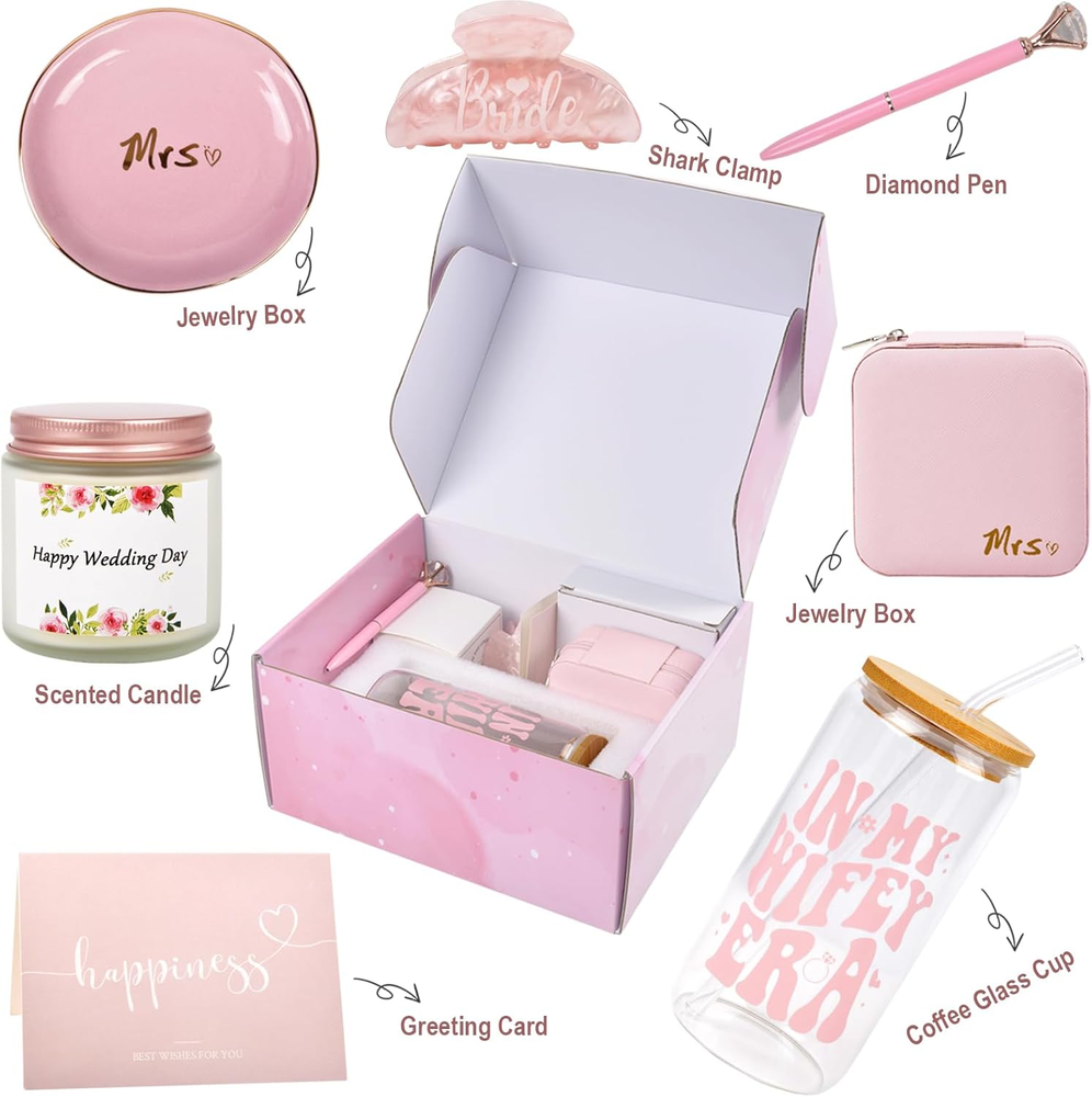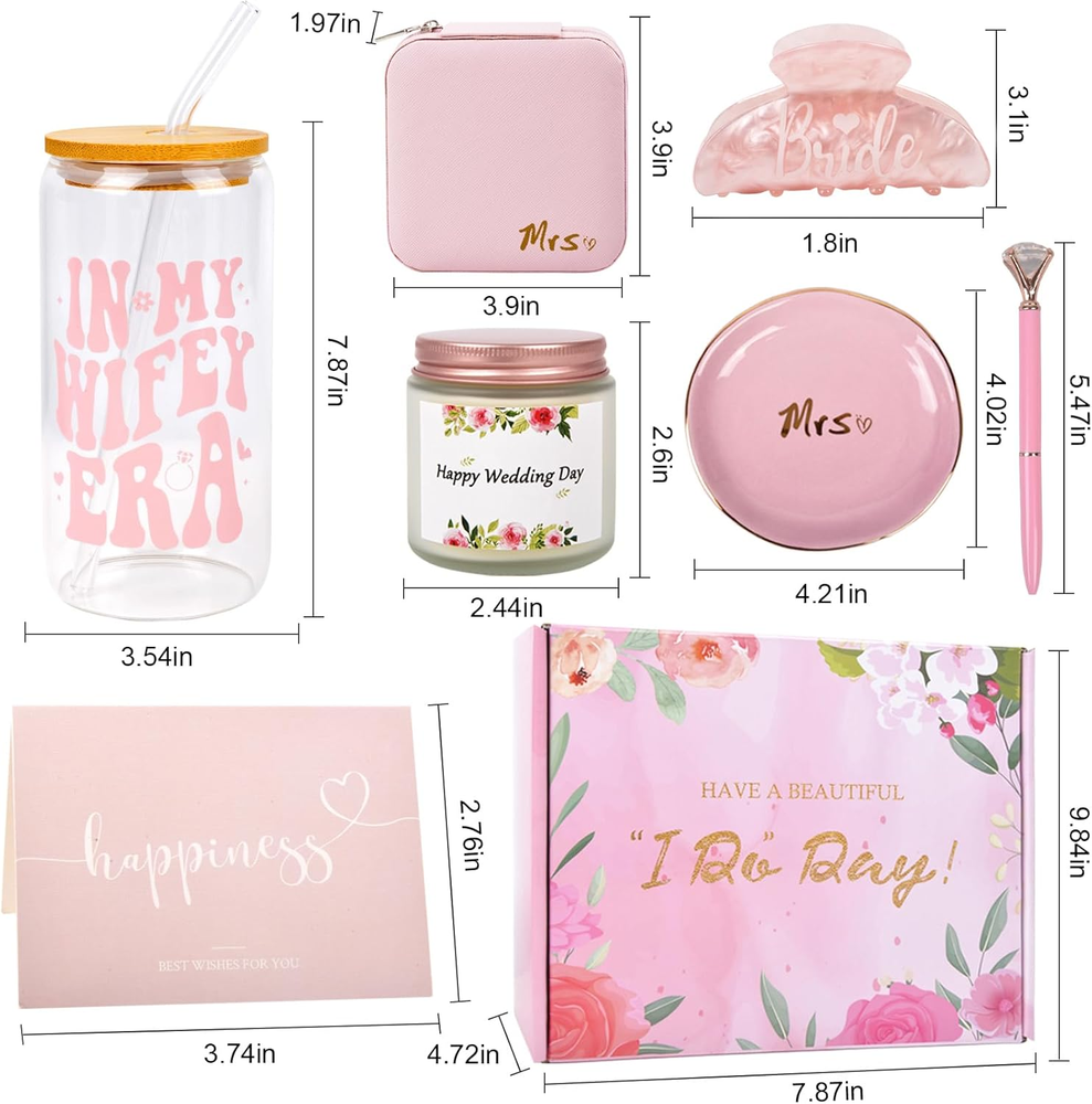 Store New Arrivals Add to Favorite View Feedback Contact Fast deliveries to the customer's home Quality customer service John Make the customers happy! Bridal Shower Gifts for Bride - 7Pcs in My Wife Era Cup Bride to Be Gifts Box, Cool Bachelorette Gift for Women, Wedding Day Engagement Bachelor Party Fiance Gifts for Her Engaged Couples (Pink) Description 7pcs Bride To Be Gifts Box Set - This engagement gift box filled with unique and funny gifts mainly includes 1x Bride Tumbler Cup with "IN MY WIFEY ERA",1x Bride Makeup Bag,1x Bride Scented Candle,1x Jewelry Dish,1x Shark Clip,1x Diamond Pen,1x Greeting Card. Each item is thoughtfully chosen for the bride-to-be and beautifully packaged in an elegant gift box. It’s the perfect engagement gift to celebrate her special moment. In My Wifey Era Glass Cup: This 16oz glass coffee cup is stylishly designed with the phrase “IN MY WIFEY ERA” printed on the front. It features double-wall vacuum insulation and a BPA-free, shatterproof lid—making it rust-proof and perfect for keeping drinks hot or cold. This In My Wifey Era bride cup is great for both indoor and outdoor use, whether you're sipping wine, coffee, tea, milk, juice, or water. Premium Wedding Gift Box - Whether it’s for a bridal shower, bachelorette party, or just a thoughtful surprise, this gift box is a sweet way to show the bride how much you care. It can be sent directly to her, with each item thoughtfully chosen for the bride-to-be and beautifully packaged in an elegant gift box. The perfect engagement gift to celebrate her special moment. Cool Bridal Shower Gifts - ooking for the perfect gift for a soon-to-be bride? Our thoughtful bridal shower gifts are sure to make her smile. Giving a meaningful present is a lovely way to celebrate this exciting milestone with her. Perfect for bridal showers, engagements, weddings, or any moment worth celebrating, this is a heartfelt gift she'll cherish during those special, romantic moments. Perfect for Any Occasion: Whether it’s for a bridal shower, bachelorette party, engagement celebration, wedding day, or just a special moment, this bride gift set is a perfect choice. It’s a fun and unique way to celebrate the bride-to-be and create lasting memories. It also makes a thoughtful gift for any female friend or family member who deserves something special. Product description Can this set be a wedding gift? This engagement gift box filled with unique and funny gifts mainly includes 1x Bride Tumbler Cup with "IN MY WIFEY ERA",1x Bride Makeup Bag,1x Bride Scented Candle,1x Jewelry Dish,1x Shark Clip,1x Diamond Pen,1x Greeting Card. What is this cup made of? This 16oz wine tumbler cup is well design with "IN MY WIFEY ERA" printing. The tumbler cups feature double vacuum insulation and a BPA-free shatterproof lid, making our insulated wine glasses rust-proof and ideal for keeping drinks hot or cold. What scenario is this suit suitable for? Ready to Gift: Whether it’s for a bridal shower, bachelorette party or simply a sweet gesture, It's a great way to show the bride just how much you love her. This engagement gift box can be sent directly to the bride. Cuisine Western Number of Items 7 Unit Count 7.0 Count Color Pink Item Weight 2.66 pounds Package Dimensions 10.43 x 8.27 x 4.92 inches Size 16oz ABOUT US We offer the best prices around on high quality products. Our E-store includes media such as books, movies, music and games while offering electronics, toys, sporting apparel, clothing, tools, general home, garden items and more. SHIPPING We are always working hard to ensure your package arrives as soon as possible. Please understand that some factors like weather, high postal traffic, and the performance of shipping companies are outside of our control. We offer free shipping to the lower 48 states and ship within 2 business days of payment, usually sooner. We do not accept P.O. Boxes. Please provide a physical address. For shipping outside of the continental USA, we only use eBay's Global Shipping Program. The item is shipped to KY and then sent to the rest of the world. International customers are responsible for all duties and taxes. Continue to 'check out' to calculate costs for shipping the item to your country. Messages regarding eBay's Global Shipping Program MUST be directed at eBay EXCLUSIVELY. RETURNS We offer a 30-Day Return Policy on items in which you are not completely satisfied with. You have the option of a full-refund or an exchange of the item. No returns are available on items shipped outside of the USA PAYMENT We accept PayPal. CONTACT US This page content is yet to come Please ad us to your favorite seller and visit again later Thank You CUSTOMER SATISFACTION We try our very best to make sure every customer is completely satisfied. If there's a problem, message us! We're happy to help. WE ACCEPT