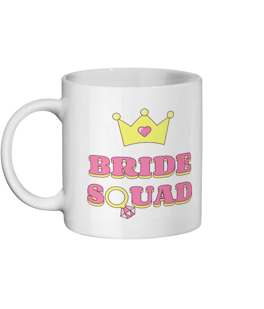 Bride Squad Mug Bride Squad Gift Bridal Party Mug Bridal Party Gift Hen Do Mug Hen Do Gift Bride To Be Team Bride. Bridal Mug Product Details.. This high quality 11oz. ceramic white mug has a premium hard coat that provides crisp and vibrant color reproduction sure to last for years. Perfect for all hot & cold beverages. The highest quality printing possible is used. It will never fade no matter how many times you wash it. Material: 100% Ceramic. Print both sides. Dishwasher and Microwave Safe. High Gloss + Premium White Finish. Printed in the U.S.A. Personalized & Custom. We support personalized and custom mug to add custom, when placing an order, you can add notes to the "order note" in shipping address section. Also you can contact us directly via message. Shipping Info. Ready to ship in 1 to 2 business days, All products are made-to-order and proudly printed in the United States. Shipped by USPS and DHL, You will receive your order in 5-7 days. Replace & Refund. All products are defective during shipping broken, chipped will be replaced free of charge. You are not satisfied with the product, we will refund 100% money to you. If any other issues arise, please do not hesitate to message, we would be more than happy to assist you.