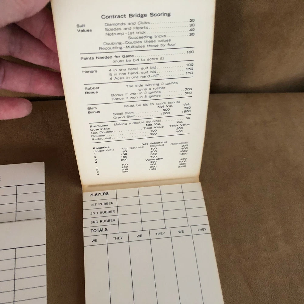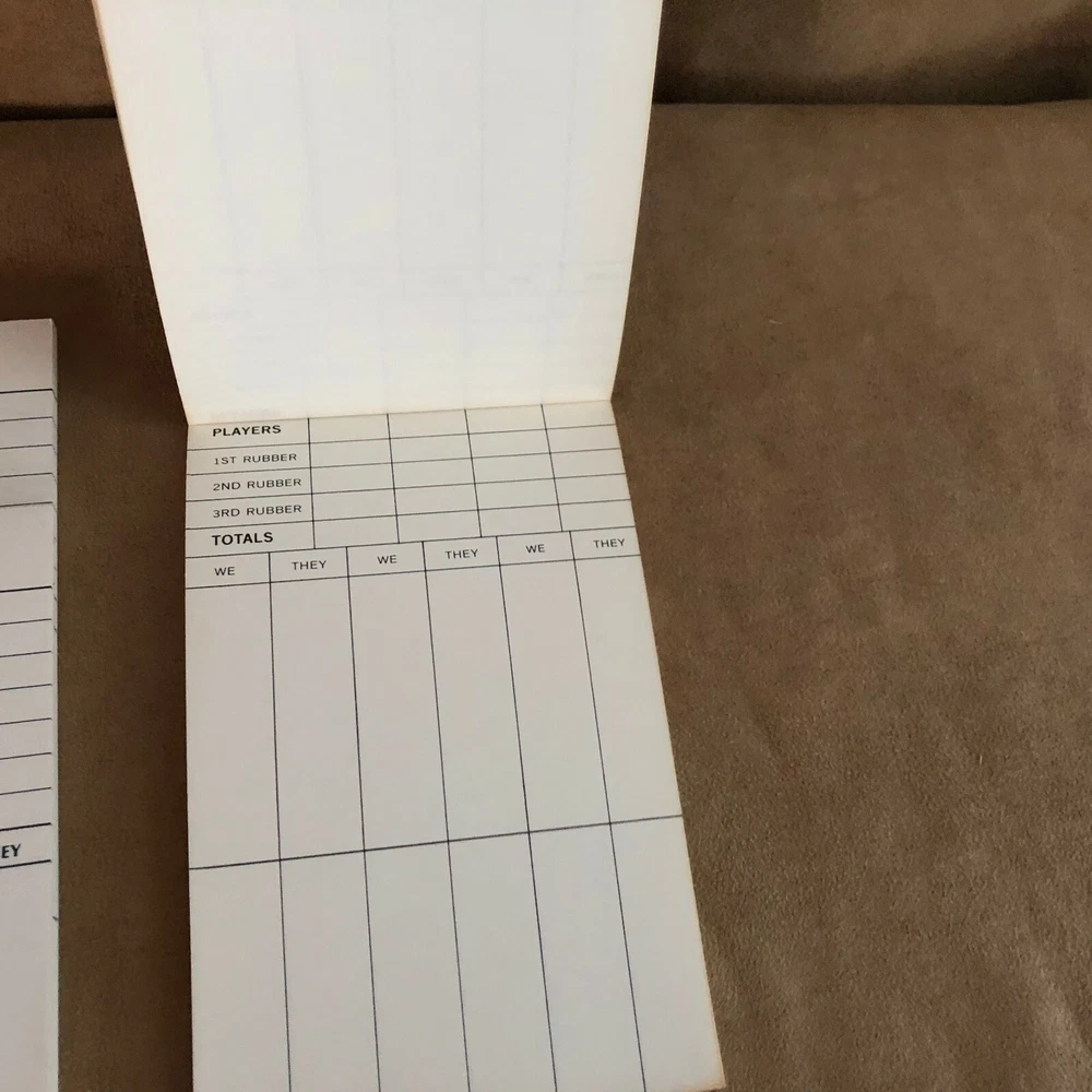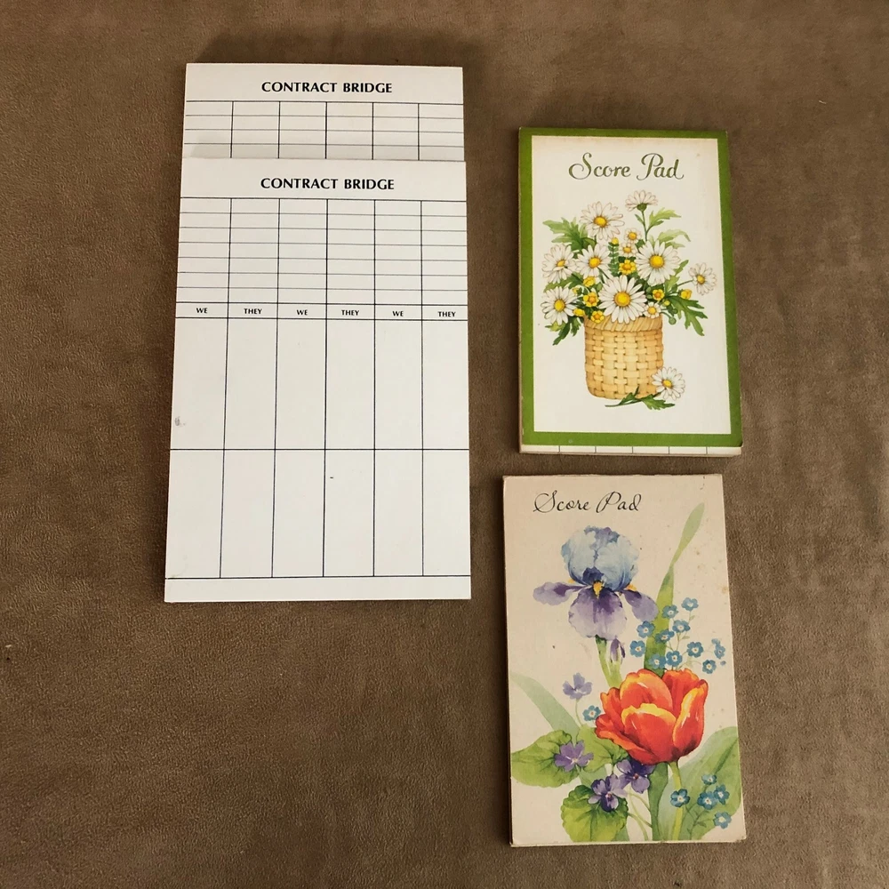 Vintage bridge scoring pads as seen. Check out my Games and other listings. I sell a variety of new and vintage items. Browse by see other items , or at my store Songbird’s treasure. Add me as a favorite seller or store. I am constantly adding new items. Smoke free, pet free home! BUY WITH CONFIDENCE! Same user I.D. since 2003. I strive to provide quality items and excellent customer service. Thanks for looking and come back again!