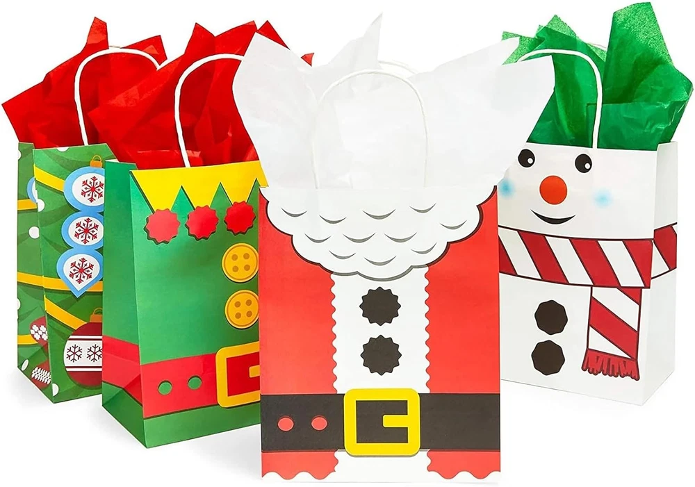 Store New Arrivals Add to Favorite View Feedback Contact Bright Creations 24 Pack Christmas Gift Bags Bulk with Handle & Tissue Paper for Xmas Present Wrapping, Holiday Party Favor Goodie Bag, Festive Party Packaging Supplies (10 X 8 In) Description Item model number DOGHU Unit Count 24.0 Count Number of Items 24 Color Multicolor Pattern Cartoon Brand Bright Creations Material Paper Item Weight 2.12 pounds Manufacturer Juvo Plus Occasion Christmas Included Components Tissue Paper Package Dimensions 13.5 x 8.46 x 3.74 inches Cartoon Character Santa Size 1 Count (Pack of 24) Christmas Party Supplies: Ideal for festive occasions, these 10 inch christmas gift bags with handles and tissue paper add charm to party favors. Ideal for school events, Christmas gatherings, or Secret Santa surprises! Multi-Purpose: A versatile choice, these christmas gift bags bulk 10 inch with sturdy handles double as shopping bags. Ideal for carrying craft fair finds, merchandise, or delicious treats like cookies, candy, and desserts! Dimensions: Spread holiday cheer with the christmas gift bags 24 pack, each measuring 8 x 10 x 4.7 inches. Featuring charming designs like an elf suit, Santa suit, snowman, and ornaments—perfect for joyful gift-giving! High-Quality: You’ll receive 24 10" christmas gift bags with handles and colored tissue paper in red, white, and green; they’re made from high-quality paper to ensure contents remain safely inside Festive Family Fun: Share the holiday spirit with the 24 christmas gift bags, perfect for sharing the season’s cheer. Thoughtful, stylish, and ready to brighten anyone’s day—give the gift of joy this holiday season! Product Description ABOUT US We offer the best prices around on high quality products. Our E-store includes media such as books, movies, music and games while offering electronics, toys, sporting apparel, clothing, tools, general home, garden items and more. SHIPPING We are always working hard to ensure your package arrives as soon as possible. Please understand that some factors like weather, high postal traffic, and the performance of shipping companies are outside of our control. We offer free shipping to the lower 48 states and ship within 2 business days of payment, usually sooner. We do not accept P.O. Boxes. Please provide a physical address. RETURNS We offer a 30-Day Return Policy on items which you are not completely satisfied with. You have the option for a full-refund or an exchange of the item. No returns are available on items shipped outside of the USA. PAYMENT We accept PayPal. CONTACT US This page content is yet to come Please ad us to your favorite seller and visit again later Thank You CUSTOMER SATISFACTION We try our very best to make sure every customer is completely satisfied. If there's a problem, message us! We're happy to help.