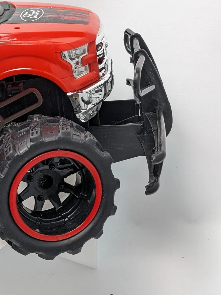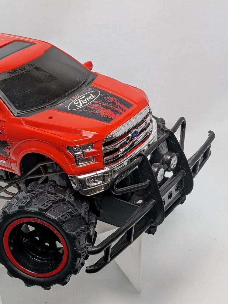 This listing is is for a Bright Ford F150 FX4 RC Off Road truck that can be a great addition to your collection. With its vibrant red color and replica of the popular Ford F-150 model, it is sure to catch everyone's attention. The 2WD truck runs on electric battery (USB plug port) and has a brushed motor type, making it a great choice for off-road surfaces. It does not come with a controller, but it is compatible with most controllers available in the market.