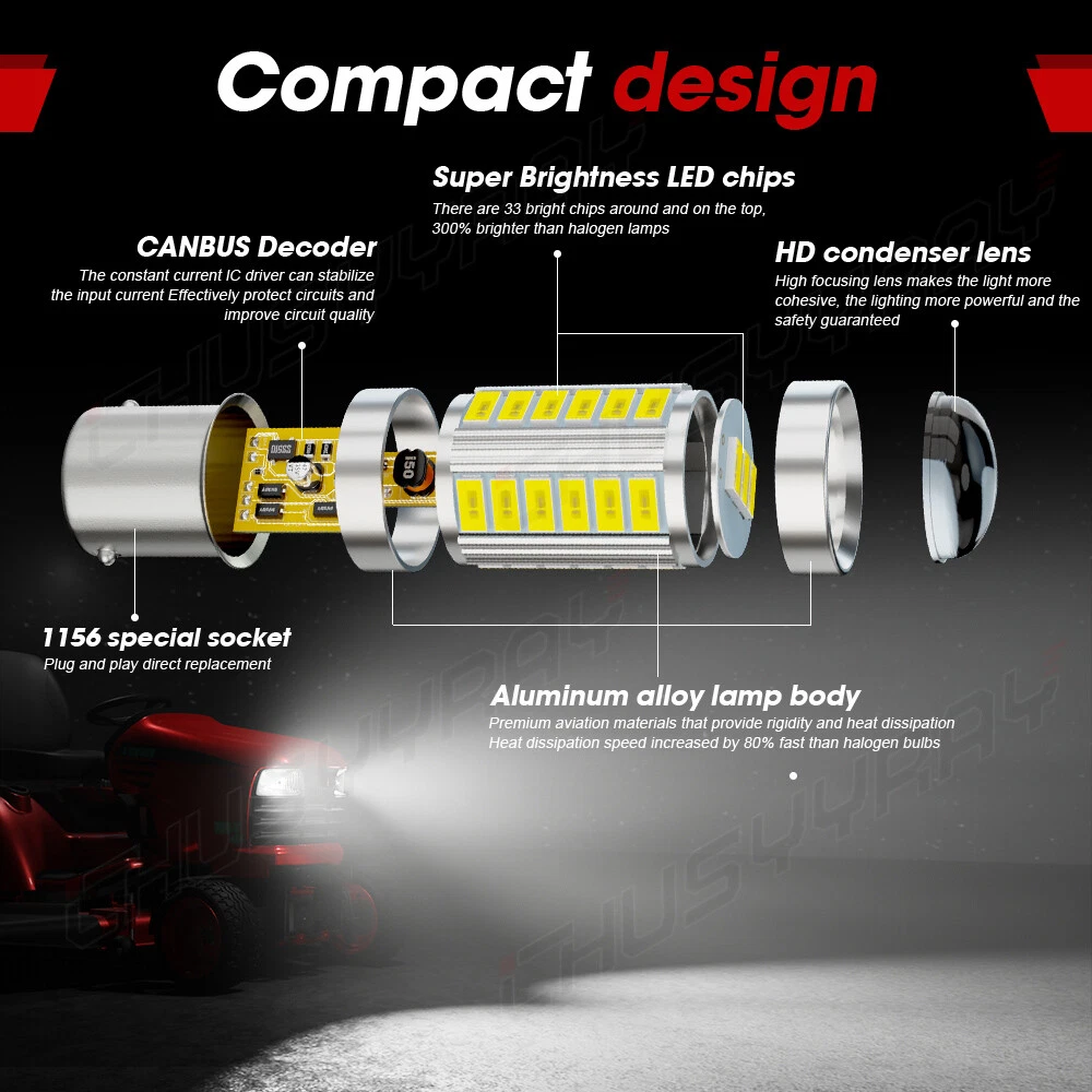 3 New Aftermarket Replacement LED Light Bulb 1156 Fits For John Deere Fits Ford NH Fits Case IH Tractor (LED Cab Light 3-Pack Part WN-LED1156B) NOTES Works for both 6 volt and 12 volt systems 360 degree beam pattern 6214 Kelvins 120 Effective Lumens 27 LED chips 5050 SMD aka tri-chips (3 LED diodes in each chip) MODELS 1070, 1090, 1100, 1120, 1130, 1140, 1170, 1175, 1190, 1200, 1210, 1215, 1220, 1270, 1290, 1294, 1300, 1310, 1320, 1370, 1390, 1394, 1494, 1510, 1520, 1570, 1620, 1640, 1644, 1660, 1664, 1670, 1680, 1688, 1700, 1710, 1715, 1720, 1896, 1900, 1910, 1920, 2000, 2010, 2090, 2094, 2096, 2144, 2166, 2188, 2240, 2290, 2294, 2366, 2377, 2388, 2390, 2394, 2440, 2520, 2577, 2588, 2610, 2640, 2940, 3000, 3100, 3110, 3120, 3600, 4250, 4440, 4520, 4640, 4840, 5010, 5020, 650, 7010, 750, 8010, 850 REFERENCE NUMBERS: 529068, A41264, AD0262R, ELJ50-0061, LED1156, LED1156B, LED1156B-A