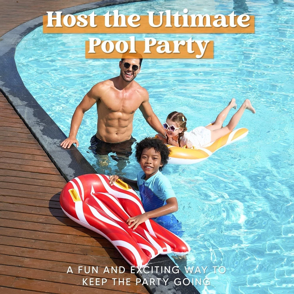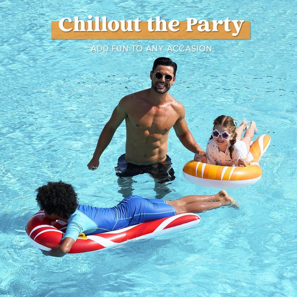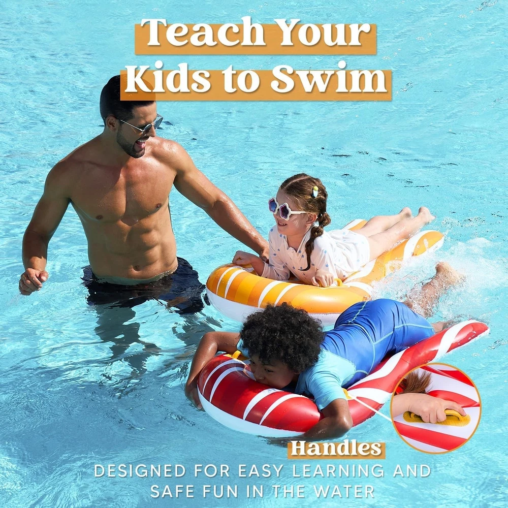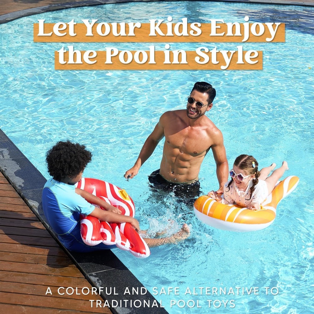 These inflatable pool floats are perfect for kids learning to swim! The bright colors make them easy to spot, and they’re super lightweight yet sturdy. My little one felt confident and safe while practicing kicks and paddling. The material is durable, and they inflate quickly—no hassle at all. Great value for a two-pack, and they held up well even after multiple uses. Definitely a summer must-have for pool fun!