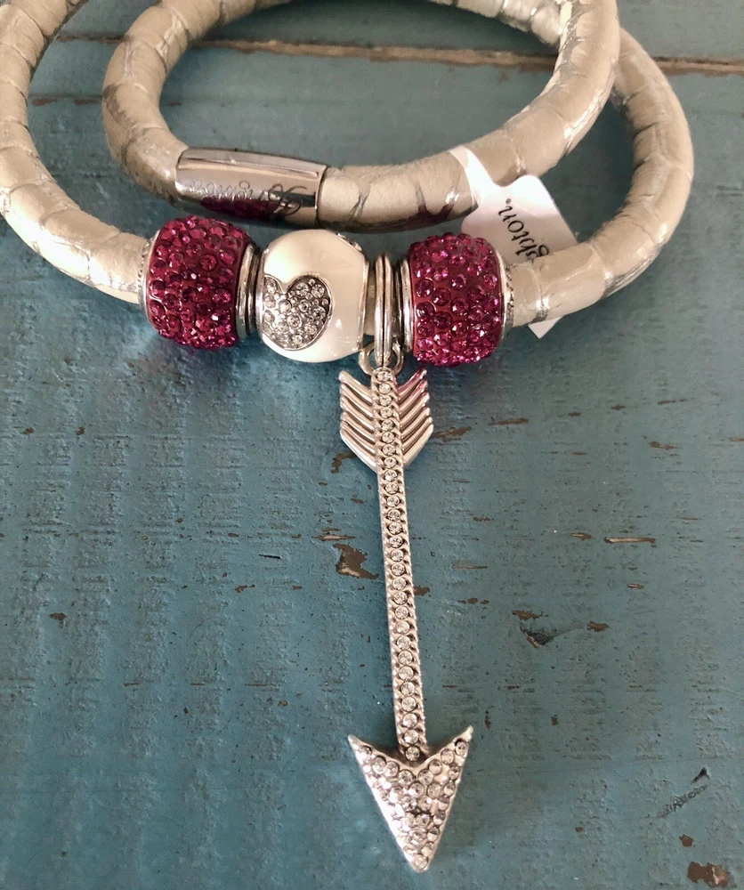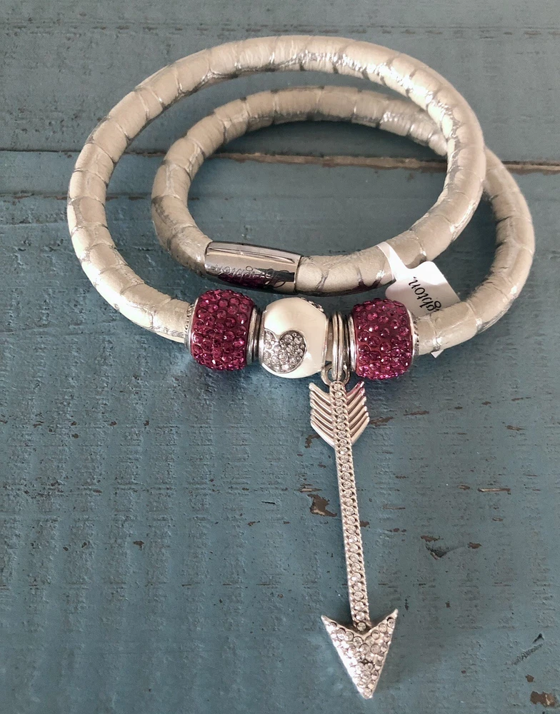 Main Stone Shape:Not ApplicableMetal:Silver PlatedFeatures:Magnetic, WrapMetal Purity:UnknownGender:FemaleType:BraceletBrand:BrightonMaterial:LeatherShape:RoundSecondary Stone:Not ApplicableBase Metal:UnknownTheme:LoveColor:ChampagneCut Grade:Not ApplicalbeMain Stone Color:No StoneMain Stone:No Stonelot:NoClosure:MagneticMain Stone Treatment:UnknownCharm Type:Slidegtin13:Does not applyMain Stone Creation:UnknownItem Length:8 inUPC:Does not applyNumber of Gemstones:Not ApplicableSetting Style:Not ApplicalbeCountry of Origin:UnknownStyle:Beaded, Charm, Mesh
