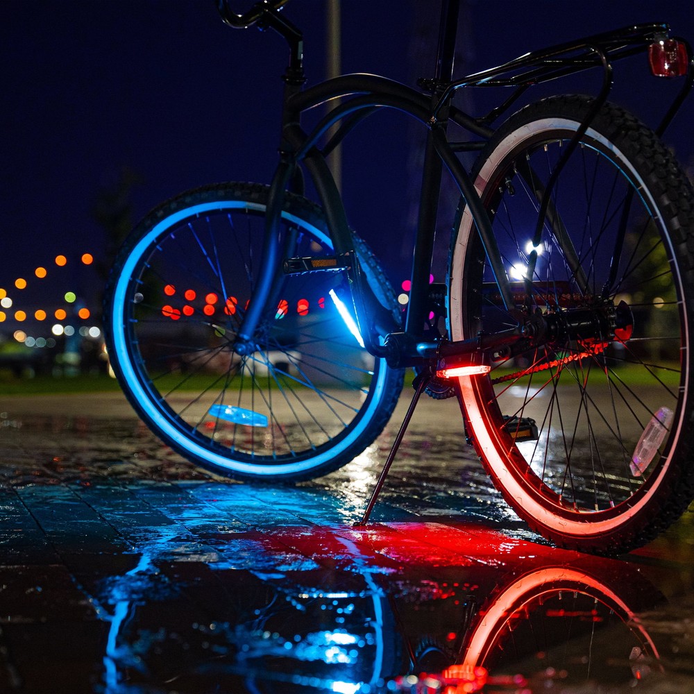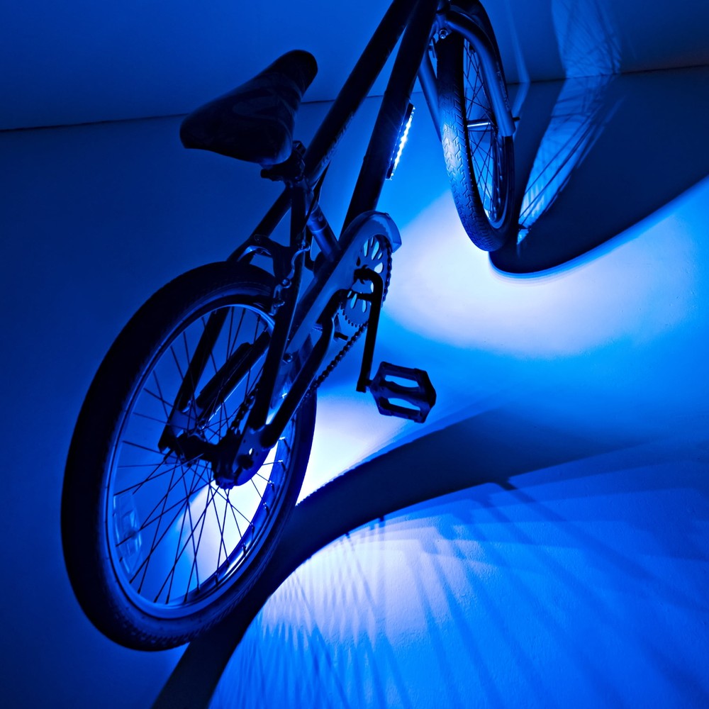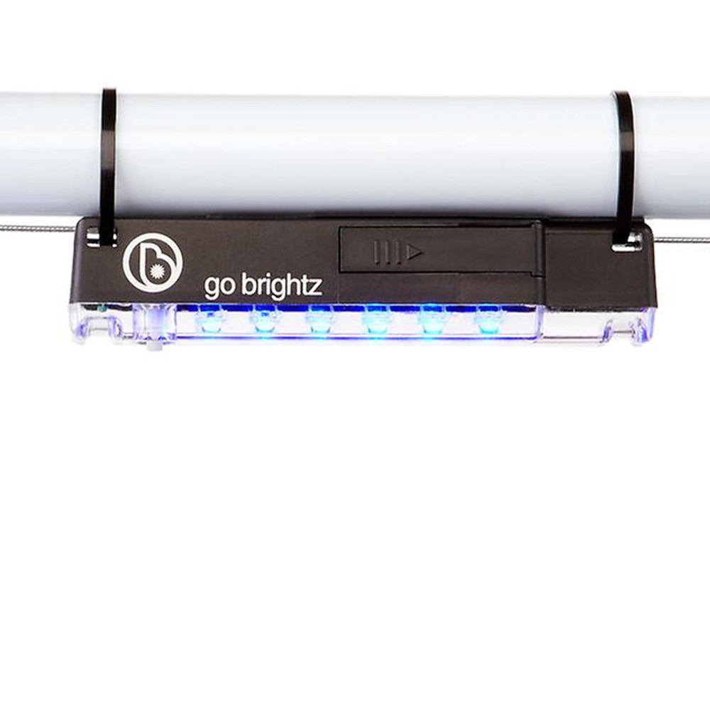 Brightz GoBrightz LED Bicycle Accessory Frame Light, Weather-Resistant, 1 Count, Width 0.75 in, Blue: Ride your bike on a path of colored light! Go Brightz super-wide LED light attaches to any bike frame and flashes or beams colored light on the ground. They have 4 modes: constant, slow flashing, medium flashing, and fast flashing. These lights fit on kids and adult bikes, and are lightweight, durable, and weather resistant. Each package includes 1 light stick and 2 rubber straps for installation. Requires 2 AAA batteries for 15 hours of light. Depth: 5.5 in , Height: 1.25 in, Weight: 0.2 lb, Width: 0.75 in. Lumens output is approximately 1 lumen. Brightz GoBrightz LED Bicycle Accessory Frame Light, Weather-Resistant, 1 Count, Width 0.75 in, Blue: Contains 6 hyper-bright LEDs 4 Modes of Control - 1 constant, 3 flashing: slow, medium, fast Requires 2 AAA Batteries (not included) Battery lasts up to 15 hours Weather resistant Depth: 5.5 in , Height: 1.25 in, Weight: 0.2 lb, Width: 0.75 in Light output: ~1 lumens