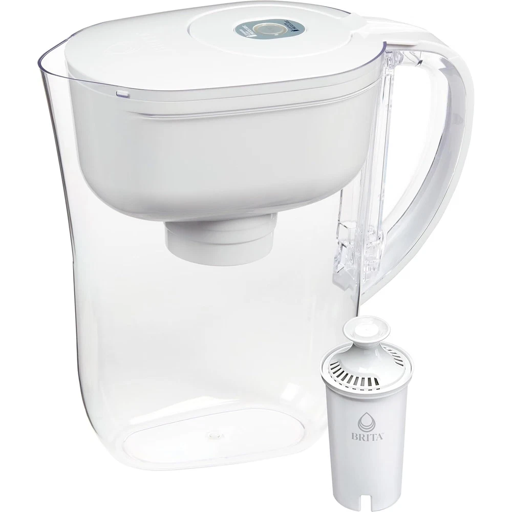 Brita Metro Water Filter Pitcher with SmartLight Change White Product Details Product Dimensions : 9.1 x 4.6 x 9.7 inches; 15.94 ounces Item model number : 0B11/OB03 Manufacturer : Brita Country of Origin : Dominican Republic Brand: Brita Special Feature: Change Filter Indicator Product Dimensions: 9.1"L x 4.6"W x 9.7"H Package Information: Bottle Installation Type: Freestanding Power Source: No Power Source Item Weight: 451.78 Grams Model Name: Metro MaterialCapacity: Plastic3 Pounds Included ComponentsPurification Method: filterNo WATER FILTER PITCHER: One BPA-free, small 6-cup Brita Metro Water Pitcher includes one Standard filter to help remove impurities from your tap water CUTS OUT IMPURITIES: Brita water filter cuts the taste and odor of chlorine and also reduces copper, cadmium and mercury impurities SUSTAINABLE: By switching to a Brita water pitcher with filter, you can save money and replace up to 1,800 single-use plastic water bottles a year EASY TO USE: Easy-fill locking lid on this water pitcher with filter helps prevent unwanted spills and makes pouring and refilling a breeze REPLACEMENT INDICATOR: Electronic SmartLight filter indicator lets you know when it is time to change your Brita filter WHAT’S INCLUDED: This water filtration pitcher comes with one water filter, which should be changed every 40 gallons or about every two months for best results ELITE FILTER: This water filtration pitcher is compatible with Elite water filters – for the freshest-tasting water, replace your Elite filter after 120 gallons or approximately every six months STANDARD FILTER: Also compatible with Standard filters - change your Standard filter after 40 gallons or approximately every two months Drink healthier, great-tasting tap water with the BPA-free, small 6-cup Brita Metro Water Filter Pitcher. This filter water pitcher cuts the taste and odor of chlorine, plus it reduces copper, cadmium and mercury impurities, to deliver great-tasting drinking water. By switching to this Brita filter, you can replace 1,800 single-use plastic water bottles a year to stay hydrated, save money and reduce plastic waste. This filtered water pitcher features an easy-fill locking lid that helps prevent unwanted spills and allows for effortless pouring and refilling. An electronic SmartLight filter indicator on this water purifier pitcher lets you know when it is time to change the Brita filter. This water purifier pitcher comes with one Standard water filter, but it's compatible with both Elite and Standard water filters. Replace your Elite filter after 120 gallons or about every six months, or replace your Standard filter after 40 gallons or about every two months. Get great taste, less waste and more savings from Brita.