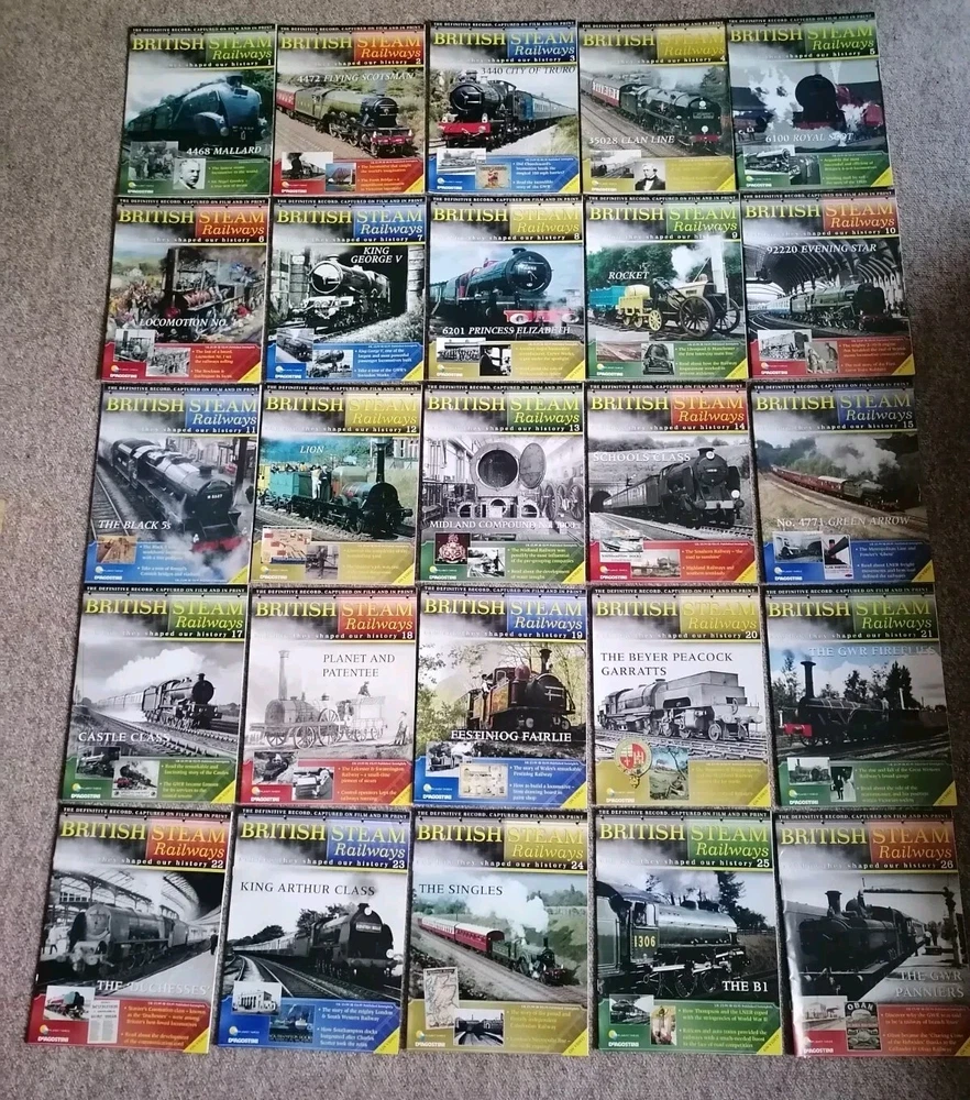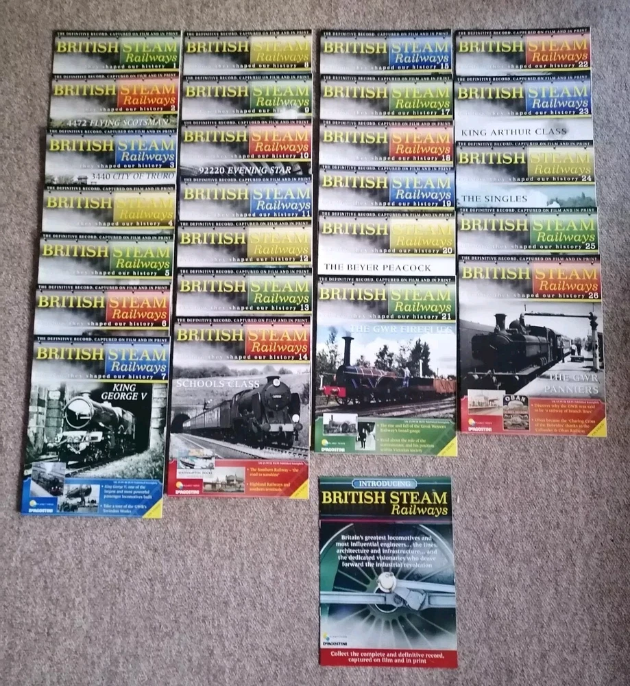 British Steam Railways Magazines DeAgostini Bundle x25 ( 1 - 15 & 16 - 26 ) + British Steam Railways Introducing Please Note: Missing Nr. 16 Very Good Condition See Pictures for Details
