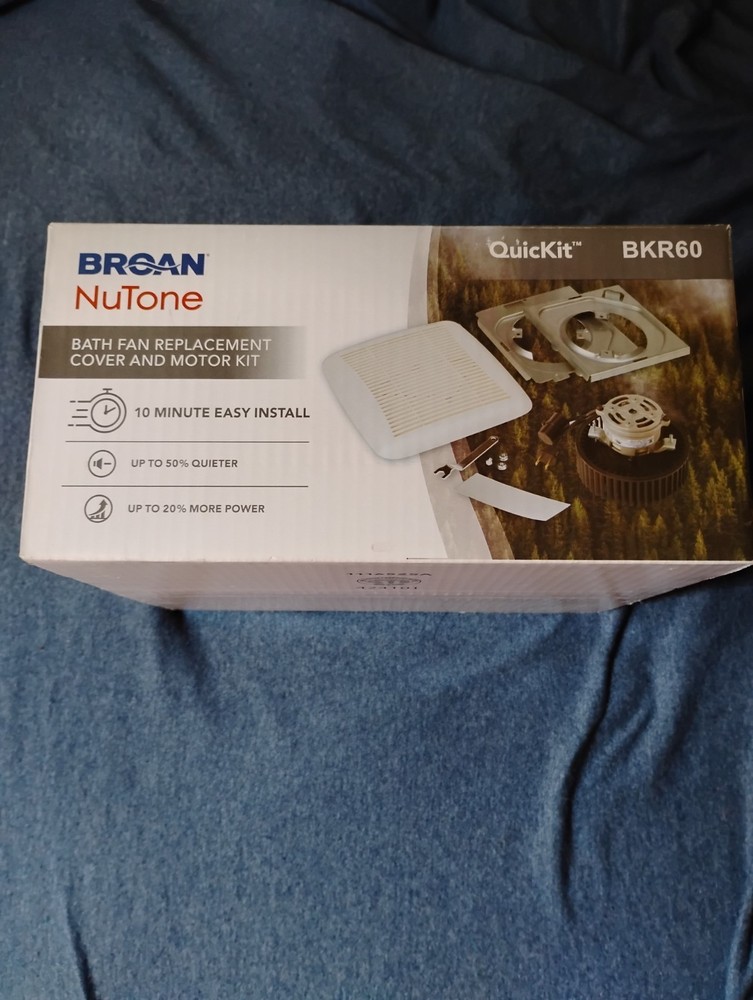 The Broan-NuTone BKR60 QuicKit Ultra-Quiet Bath Fan Replacement Motor & Grille Cover is a ceiling-mounted upgrade kit designed for bathroom ventilation systems. This electric-powered exhaust fan features a square shape and a 4-inch diameter, with a matte white finish. Made from plastic and galvanized steel, this replacement kit by Broan-NuTone ensures quiet and efficient operation in any bathroom setting.
