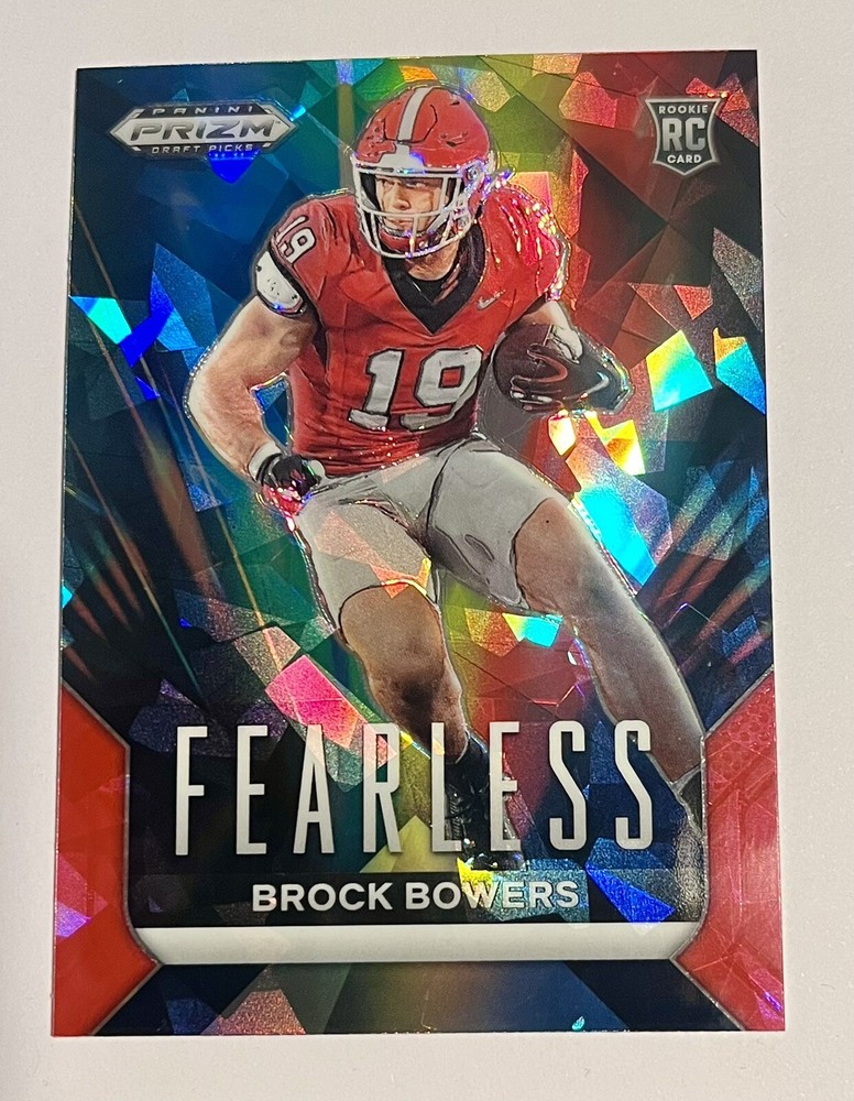 This is a lot of 3 Brock Bowers 2024 Panini Prizm Draft Picks football trading cards featuring prism insert rookie cards. The cards are from the National Football League (NFL) and are part of a limited edition collectors' set. They are original, licensed reprints by Panini, with hologram and short print features. The cards are in English and manufactured in the United States, showcasing the Las Vegas Raiders player in his rookie season. Brock Bowers Lot Of 3 Panini Prizm Draft Picks Instant Impact Insert Fearless Insert Red Refractor Prizm Draft Picks RC. NFL ROTY Brock Bowers Prisms Insert RC