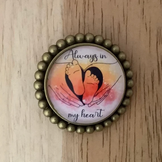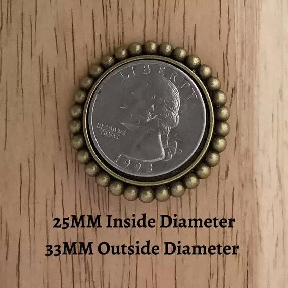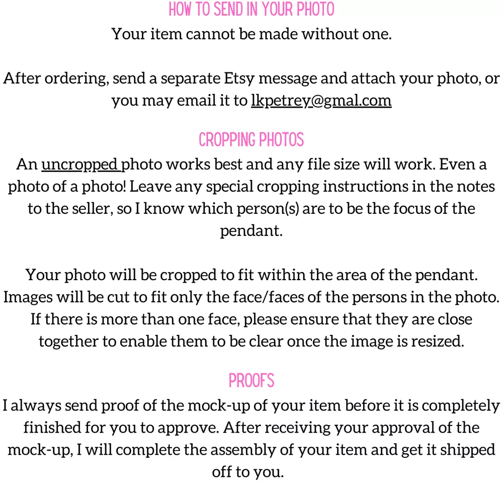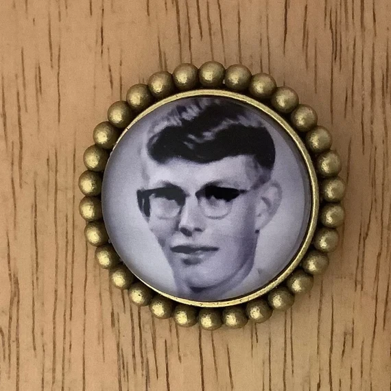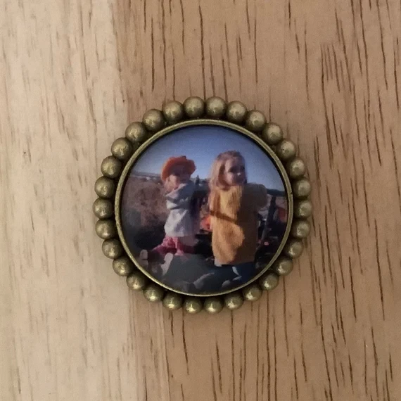 This Lapel pin will feature the photo of your choosing. This is a 25MM glass cabochon charm set into a bronze-tone stainless steel flat-back pin-style base with a ball chain design around the edges. These can be worn in remembrance of a loved one or pet lost, or a family member living far away. You can have your favorite person, pet, quote, sports team, cartoon character, or whatever your little heart desires. Photo customization: After Purchase, Please submit a photo or quote in the Message Seller area. I will do a mock-up of the photo/quote for your approval and submit it in a message from eBay. Mock-Up I will send a mock-up for your approval in eBay messages. Once approved, I will assemble them and get them ready for shipping. Attention: The attached glass Cabochon is NOT waterproof, so you will need to take it off for showering/bathing/swimming or other activities where it may get wet.