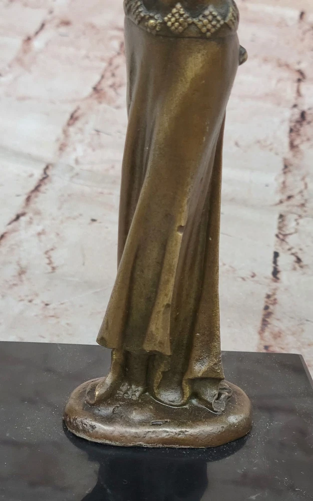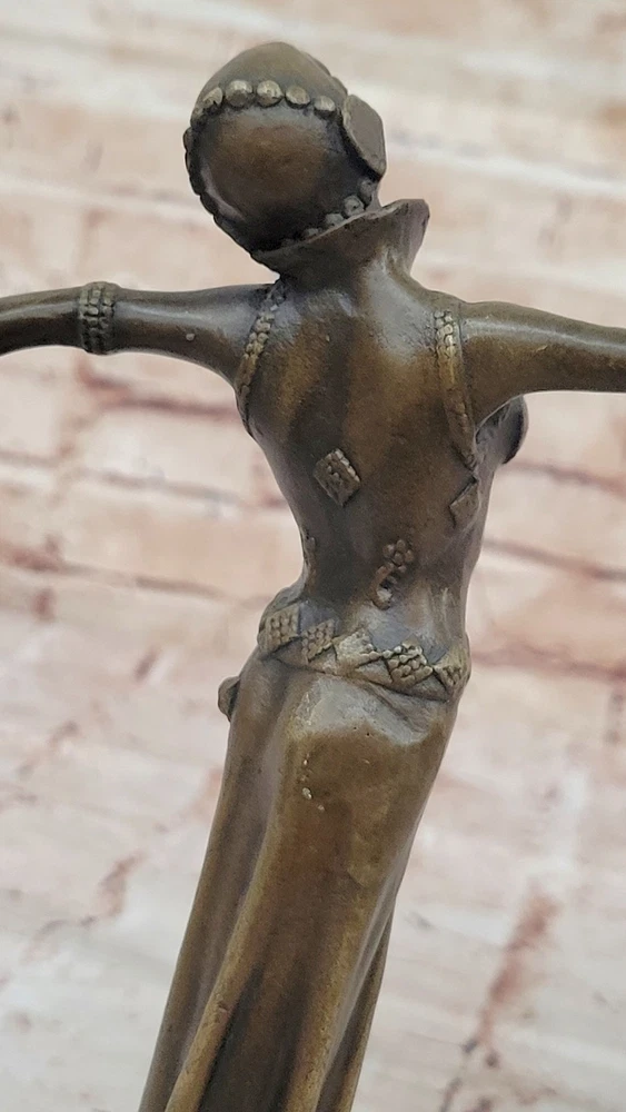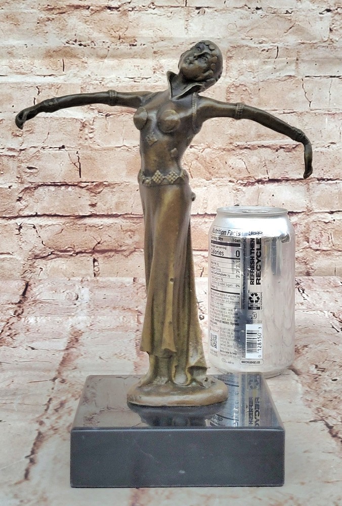 Bronze Sculpture Statue Art Deco 9" Tall Dancer Signed Chiparus Figure Gift BB Bronze Sculpture Statue Art Deco 9" Tall Dancer Signed Chiparus Figure Gift BB Condition : This sculpture is in perfect condition Bronze Dimensions with Marble Base: Height 9.5" X Width 7" Marble Dimensions:4" X 4" Height without base:9" Weight:5 LBS Inventory:57Y2382575 The beautiful maiden can be envisioned dancing to a melody only she can hear—an ethereal rhythm known only to her and nature itself. Surrounded by the silent witness of trees, land, and birds, she twirls effortlessly through the open air, a vision of grace and liberation. Her arms are outstretched, her face uplifted, and her spirit seems to soar alongside the breeze as she embraces the sky above. Crafted in bronze, this sculpture captures a fleeting moment of movement and emotion with exceptional detail. The figure exudes a lightness and freedom, her flowing garments and posture reflecting both elegance and spontaneity. Every curve and gesture invites the viewer to imagine the serenity and joy of being truly in harmony with the natural world. Handmade using the ancient lost-wax casting method, this sculpture is finished with a rich brown patina that enhances its depth and timeless character. Mounted on a black marble base for contrast and stability, the piece bears the signature of the renowned artist D.H. Chiparus, ensuring its place as a collectible and cherished work of art. 100% Solid Bronze Egyptian Sculpture Signed Art D.H. Chiparus Figurine Decor Video will open in a new window Using the eBay App? Paste link into a browser window: [isdntekvideo] Shipping Terms : Most of our items are shipped via USPS (United States Postal Service) mail or UPS. Most orders are shipped within 24-48 hours of purchase. Please be aware that not all items are available for USPS shipping due to size and weight. We do ship to Hawaii, Alaska, Canada, Puerto Rico, APO/AE, and U.S. Virgin Islands, however, an additional charge may be required. Please contact us before making any purchases in these areas. For Non-USA customers, you may be responsible for all duty, tax, brokerage fees that may be due upon delivery (shipping costs cover freight charges only). We also ship internationally. Please refer to the "Shipping and Handling" chart for the rates for each area. Payment : We accept just about any form of payment. PayPal, Master Card, Visa or American Express credit cards. Money orders, cashiers checks, and even personal or business checks. For governmental institutions, we will also accept a purchase order. Please understand that for personal or business checks we have to wait for the check to clear (usually 7 days) before shipping. Condition : New Detailed Hand Crafted Hot Cast Bronze Satisfaction Guaranteed. This is Stock Photo, Slight Color Variation!! Listing and template services provided by inkFrog