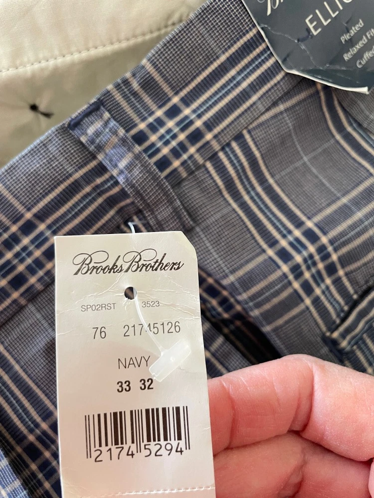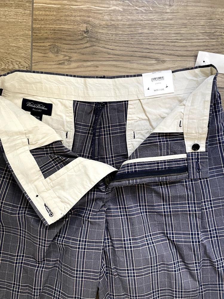 Brooks Brothers Pants Mens 33x32 Blue Plaid Elliot Pleated Cuffed Preppy Trouser