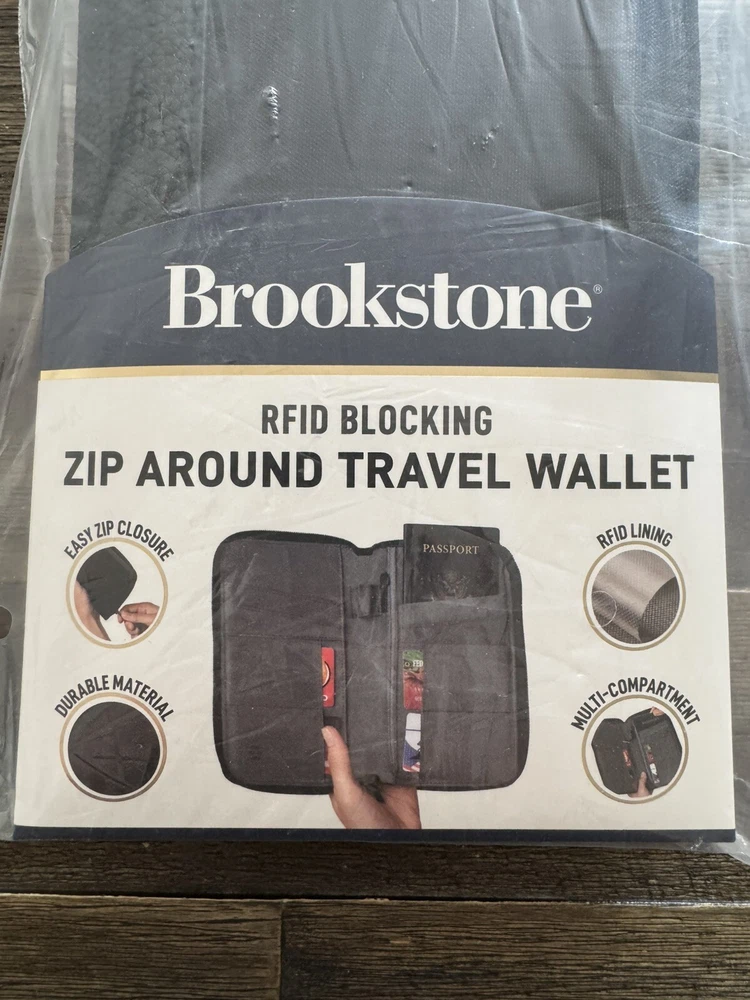 The Brookstone Zip Around Travel Wallet is a stylish and convenient accessory for women. This zip-around wallet is designed to keep your essentials organized and secure while on the go. Perfect for travel or everyday use, this wallet features the signature Brookstone brand quality and design.