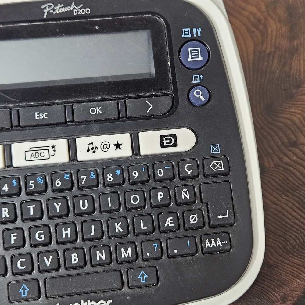 This is a Brother P-touch Model PT-D200 Label Maker Thermal Printer. It is a genuine product that has been tested and is in working condition. The printer uses thermal print technology and is perfect for creating labels for your business or personal needs. It is a part of the Brother P-Touch series and is a reliable option for label making.