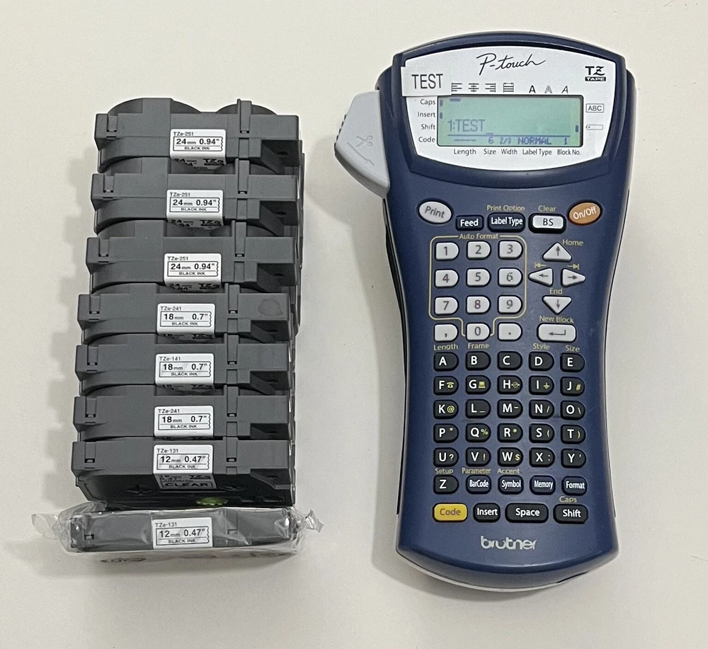 Brother PT-1400 label maker Used, tested, works great. Has a little wear but in overall great shape. Includes nice lot of a variety of sizes and styles of refill tape cartridges. Mostly unused. You can see how little each cartridge has been used. Runs on 6 AA batteries (not included)