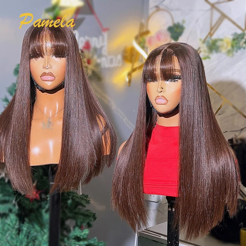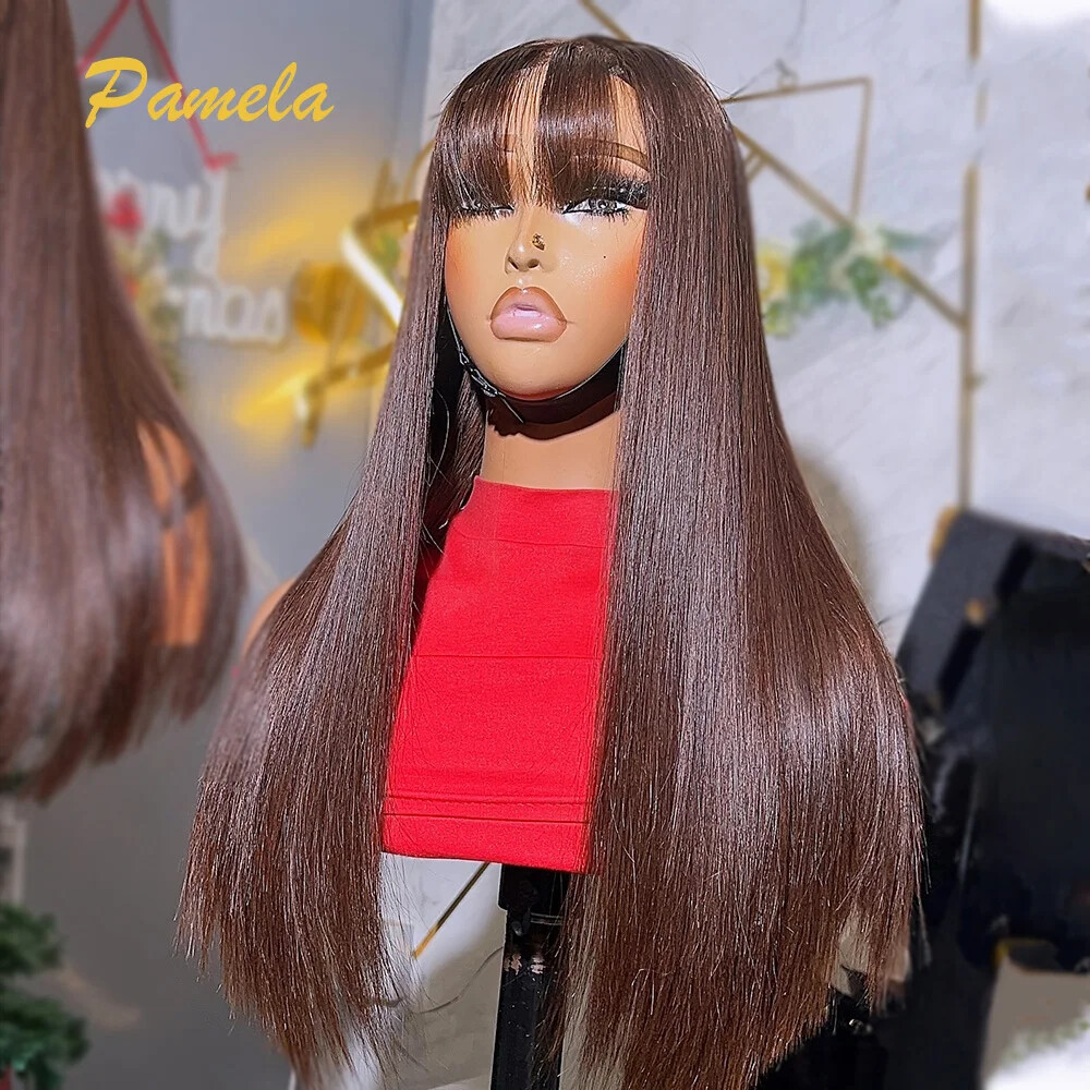 Absolutely love this wig! The chocolate brown color is rich and natural, and the lace front blends seamlessly for a flawless look. The bangs add a cute, stylish touch, and the fact that it’s glueless makes it so easy to wear. Super soft, comfortable, and looks just like real hair—definitely worth it!