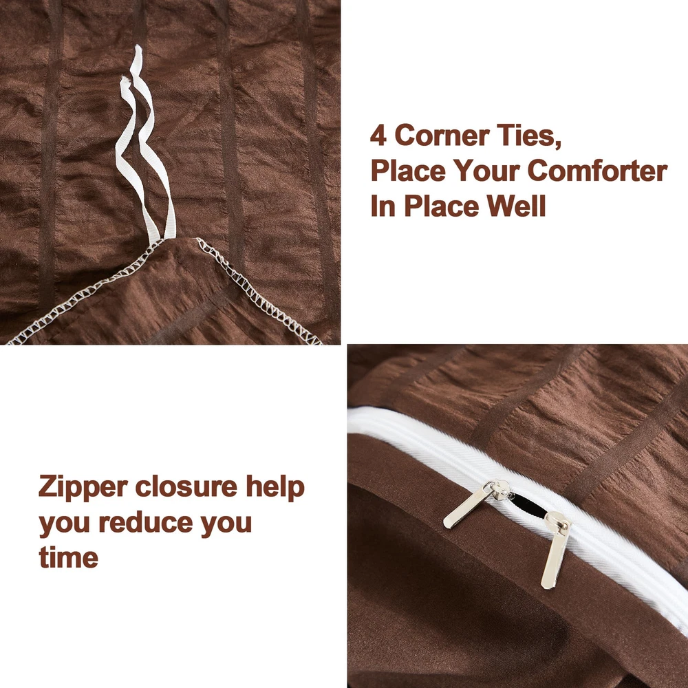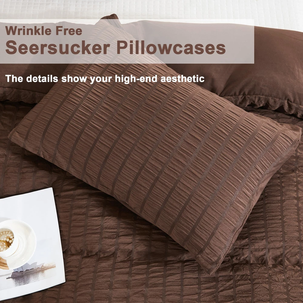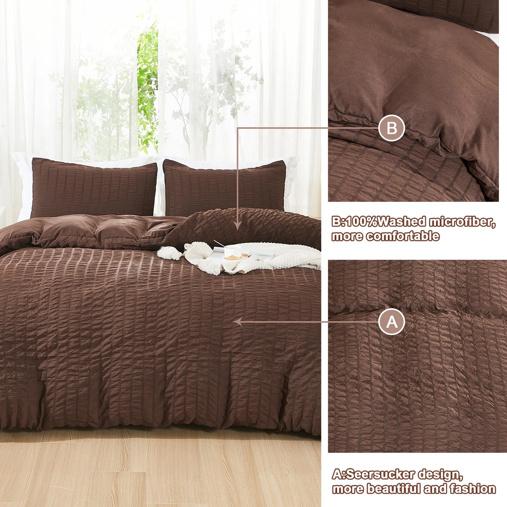 [MODERN SEERSUCKER DESIGN] Are you tired of smooth, plain duvet covers without design sense? Now our designers have been studying for a long time and designed a seersucker fabric. This fabric has a layer of wrinkled seersucker which brings a unique sense of elegance. It feels soft and wrinkled. Compared to the other same solid color products, the seemingly irregular folds are embellished with the unique individuality and artistic sense of the duvet cover, which makes it look more beautiful. [THICKER WASHED MICROFIBER] This seersucker fabric is made of high strength and thickened washed microfiber material, which is 40% more durable than ordinary materials and 20% heavier than ordinary fabrics. At the same time, this seersucker fabric will be more. breathable and more comfortable than ordinary materials. [METAL ZIPPER AND CORNER TIES] In order to save you time in changing your duvet and comforter, we have adopted a more convenient metal zipper design; at the same time, our duvet covers have corner ties in the four corners, which can better keep your duvet or comforter from slipping. [WHAT SIZES YOU CAN CHOOSE] Available in twin duvet cover: 1 duvet cover set (66"x 90")&1 pillowcases (20"x 26") ; Available in duvet cover full: 1 duvet cover set (80"x 90")&2 pillowcases (20"x 26");Available in duvet cover queen: 1 duvet cover set (90"x 90")&2 pillowcases (20"x 26"); Available in duvet cover king: 1 duvet cover set (104"x 90")&2 pillow Cases (20"x 36"); Available in duvet cover clafornia king: 1 duvet cover set (104"x 98")&2 pillow Cases (20"x 36"). [EASY CARE and PET FRIENDLY] Our seersucker duvet cover is machine washable with cold water on gentle cycle with similar colors. Please do not bleach and iron. It doesn't attract your pet hair. Holding up to dog/cat paws and dog/cat hair brushes off easily .