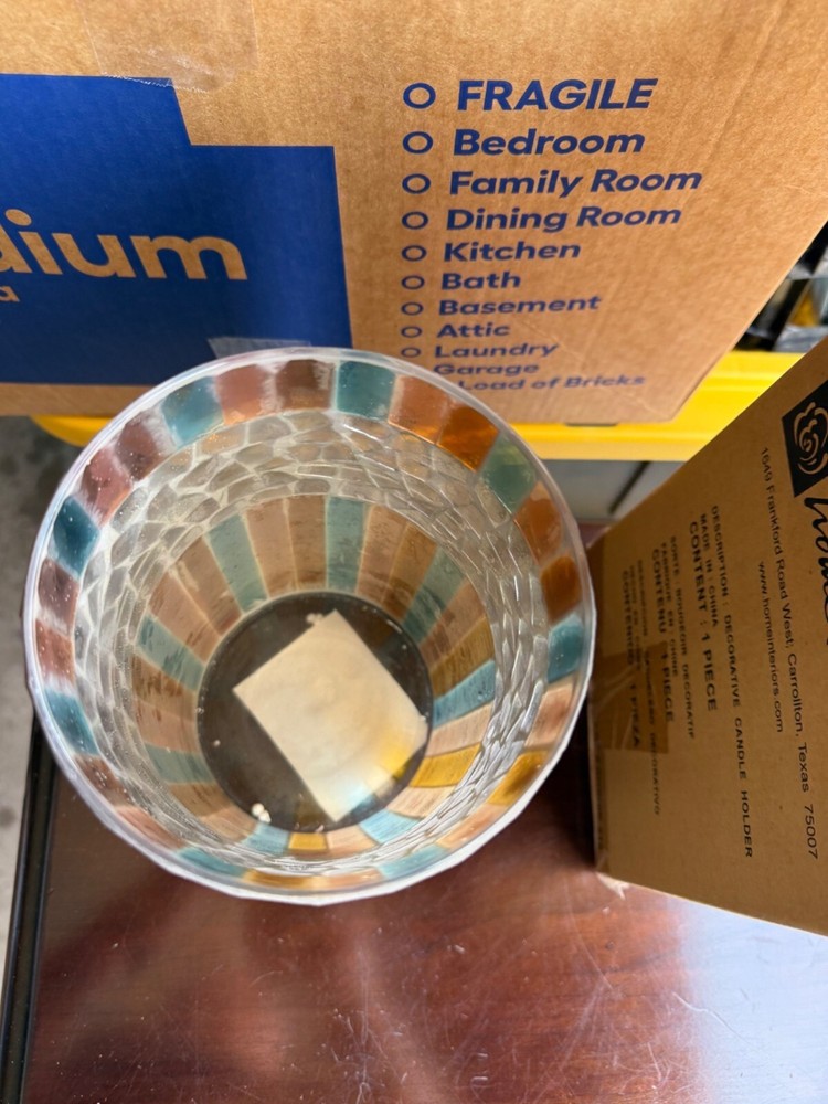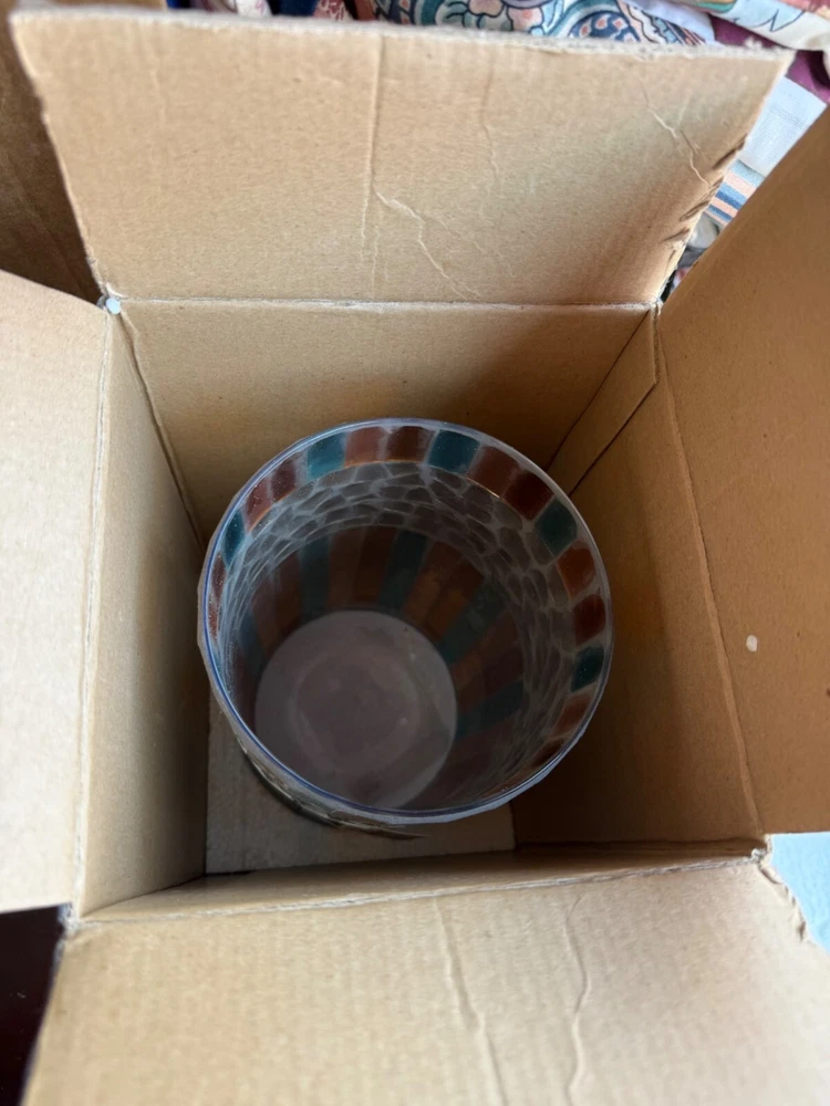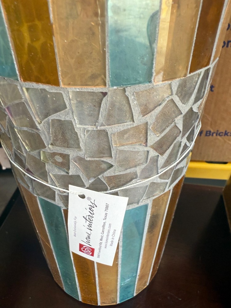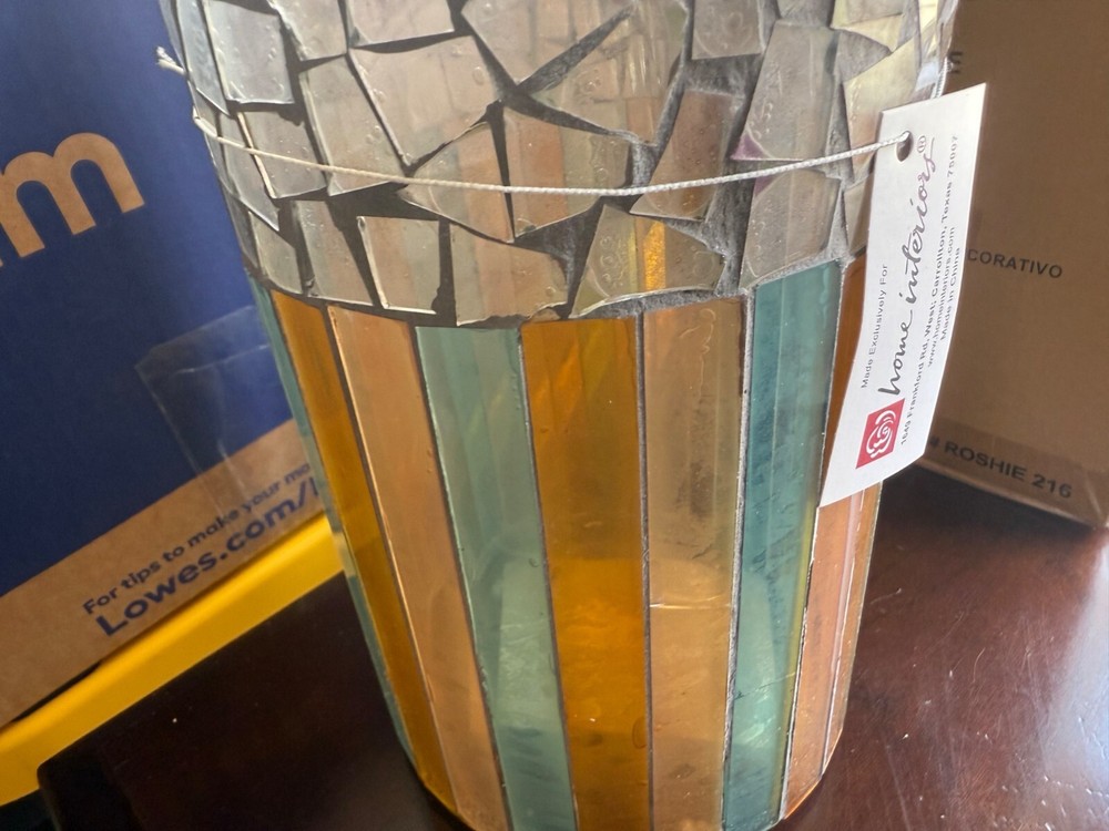 This is new inbox condition. New with tags. The candle holders are brown and a very light blue. The light blue tends to look clear depending on the lighting. I am happy to combine shipping. Please contact me before purchasing multiple items to ensure cheaper shipping. I use recycled packing material where possible. I am clearing out my mother-in-law‘s storage unit so I have many beautiful items available. Please check out all my items or contact me if you’re looking for something specifically. Thank you for looking..