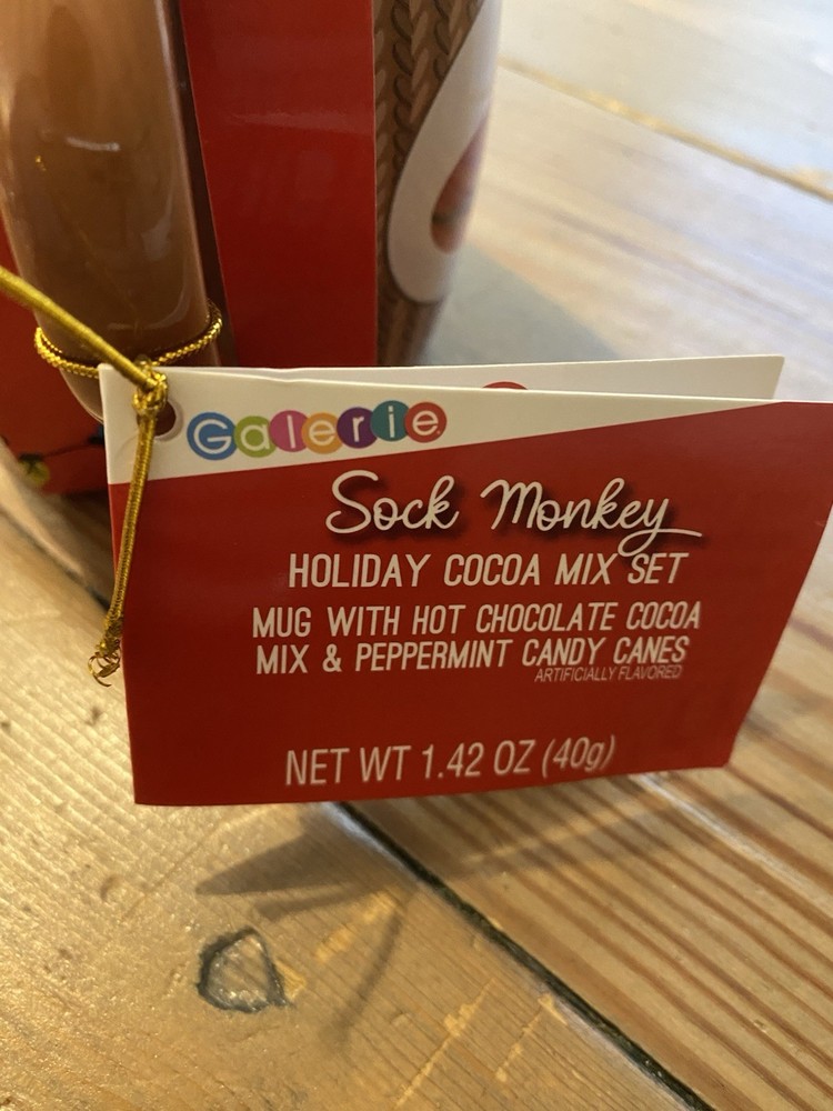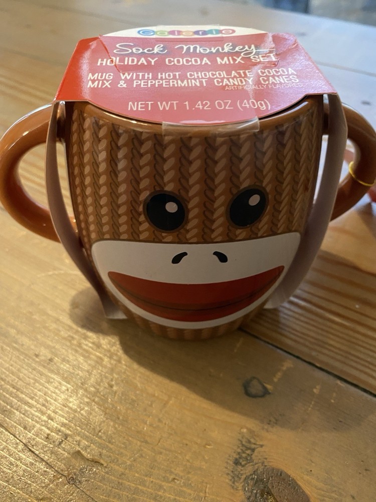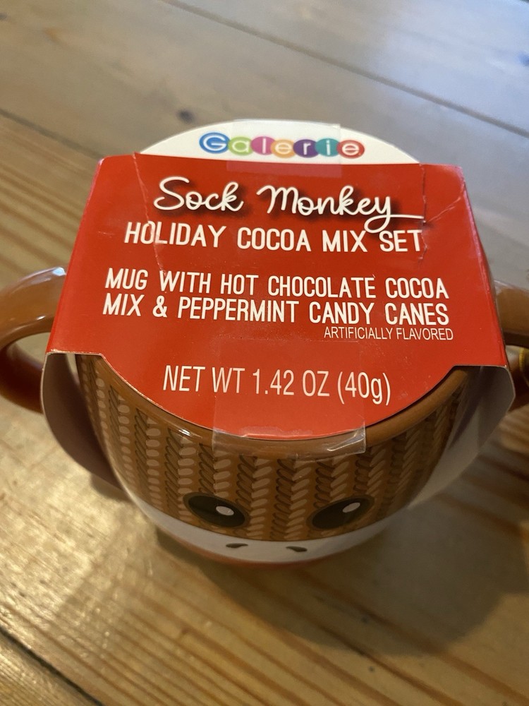 The Galerie Brown Sock Monkey Holiday Cocoa Mix & 4” Mug Gift Set is a charming and whimsical addition to your home. This jumbo mug features a painted sock monkey design on a brown ceramic exterior, perfect for serving up to 20 oz of hot or cold beverages. The set includes a cocoa mix, candy canes, and is microwave and dishwasher safe for easy use and cleaning. This unique gift is suitable for teens, boys, girls, and adults alike, making it a fun and festive choice for any occasion.
