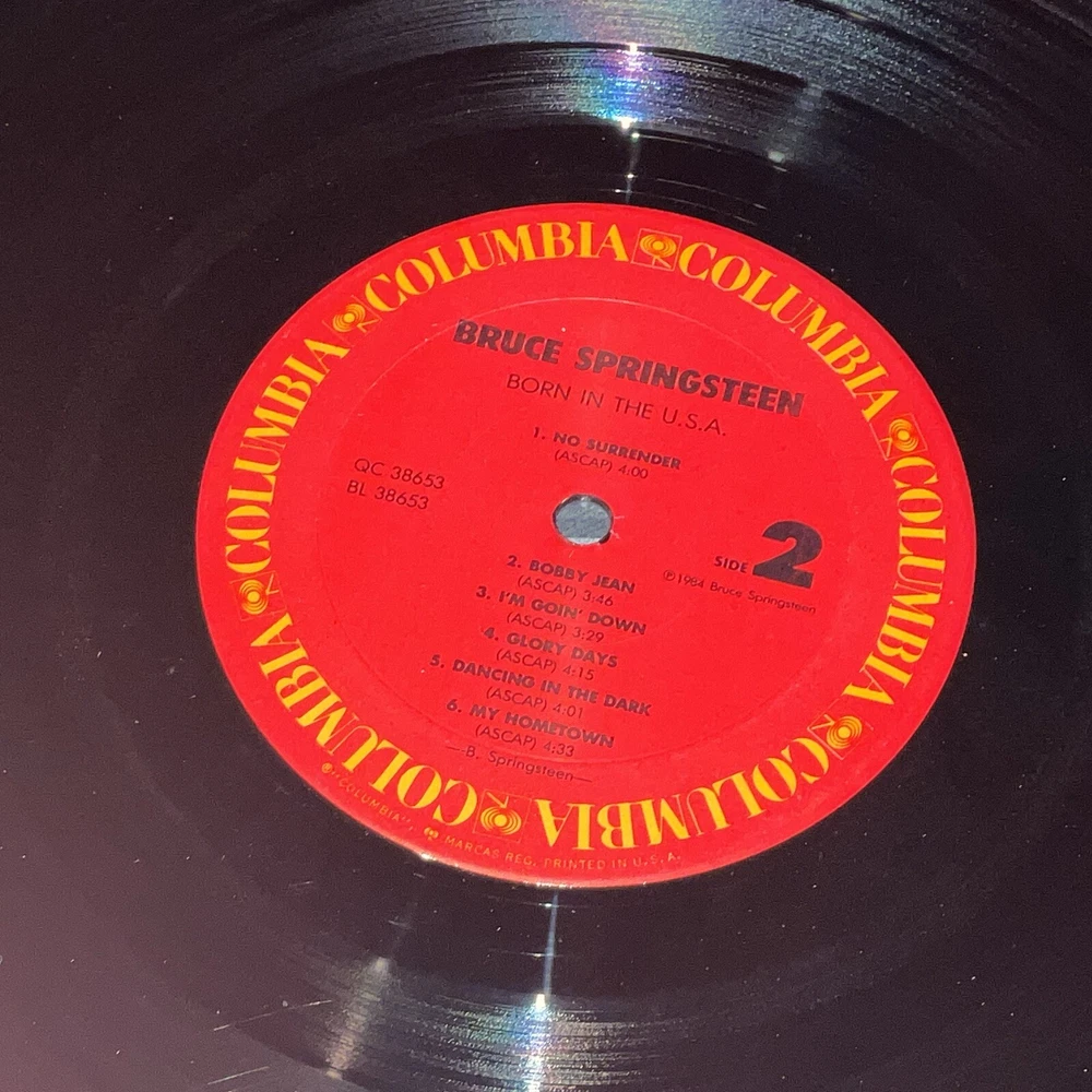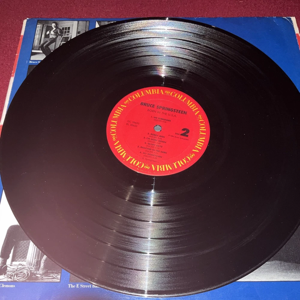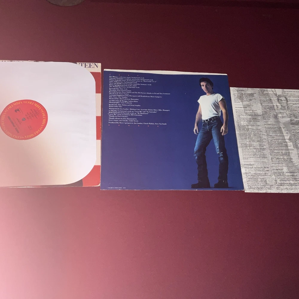 This Bruce Springsteen LP, titled "Born in the U.S.A." and released in 1984 on Columbia Records, is a classic rock and pop rock album that features 33 RPM speed and a black vinyl material. The record grading is Excellent (EX) and the sleeve grading is Very Good (VG), with an original inner sleeve and cover included. The album is in stereo format and has a record size of 12". The cardboard sleeve case type and ultrasonic cleaning add to the overall value of this early pressing edition. The lyrics are included in the package, making it a must-have for any fan of rock 'n' roll music. This LP is a true gem for collectors and enthusiasts alike.