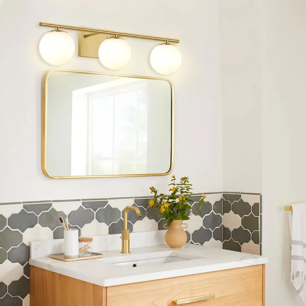 This vanity light is a stunning upgrade for any bathroom! The brushed brass and milk glass combo adds a touch of elegance, while the IP44 waterproof rating ensures durability. Installation was simple, and the sturdy metal construction feels premium. The soft glow from the globes creates a warm, inviting atmosphere—perfect for modern or classic decor. Highly recommend for both style and function!