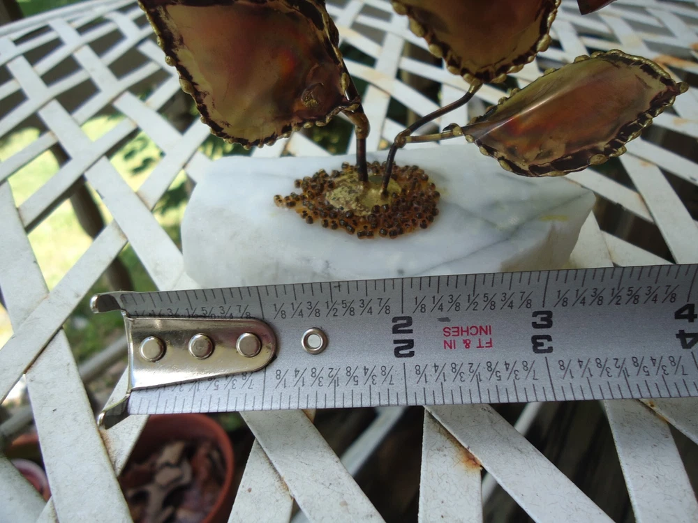 Roses on Marble Brutalist Metal Sculpture Red Floral Forever Flower 6" Decor Note that some of the seed beads at the base of the flower are missing.