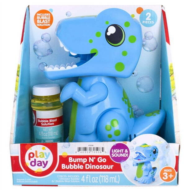 Unleash the prehistoric fun with the Play Day Bump N Go Bubble Blowing Dino-Lights Sounds & Movement toy. Designed for vibrant play, this cheerful green Dino toy activates with a gentle bump, creating an engaging experience for little ones aged 3 and up. Its built-in lights and sounds ignite imagination, while the unisex design makes it a delightful addition to any child's toy collection. The toy's theme stays true to its name, offering a bubble-blowing, dinosaur-themed adventure that's perfect for imaginative play. Play Day ensures that safety and enjoyment go hand-in-hand, making this toy an ideal choice for creating memorable moments during playtime.