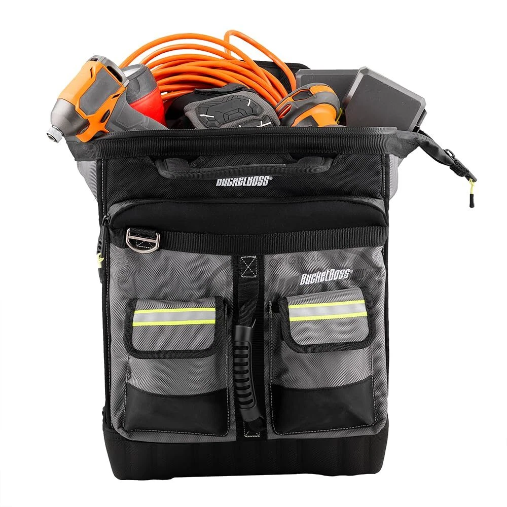 From the Bucket Boss Professional High-Visibility Series, the 14 in. High Visibility Professional Tool bag tool case has 23 total pockets and is built more like a case than a bag, hence the name. Equipped with 3M Scotchlite Reflective that meets ANSI and EN1150 Retro-Reflective worldwide standards for high-visibility and job site safety. Made for the professional, this tool bag is constructed with heavyweight 1680 2-ply poly fabric and boasts a molded, waterproof bottom to protect bag contents. This tool bag also features oversized StayPut handle grips that remain in an upright position, but also an innovative removable, adjustable strap system allowing the tool bag to be worn as a backpack, or tucked behind a cushioned back panel, or be removed altogether. D-Rings allow shoulder strap (not included) to be easily attached to the tool bag case. The front molded grip allows the tool bag to be repositioned easily while sitting upright, allowing the case to be used on a bench as a workstation. The zippered tech-pocket is lined with thick, flexible neoprene and holds up to a 13 inch laptop or tablet. Other features of this high visibility professional tool bag case include a waterproof zipper to keep its 28-liter capacity dry, and 23 total tool pockets - 19 interior pockets and 4 exterior pockets. 1680 heavy-duty poly fabric Molded, waterproof bottom and oversized StayPut handle grips Front laptop compartment fits 13 in. laptop and tablet, 14 internal pockets, 2 external HV Retro-Reflective meets EN1150 worldwide standard Removeable, adjustable straps and front handle allows handling as a work station