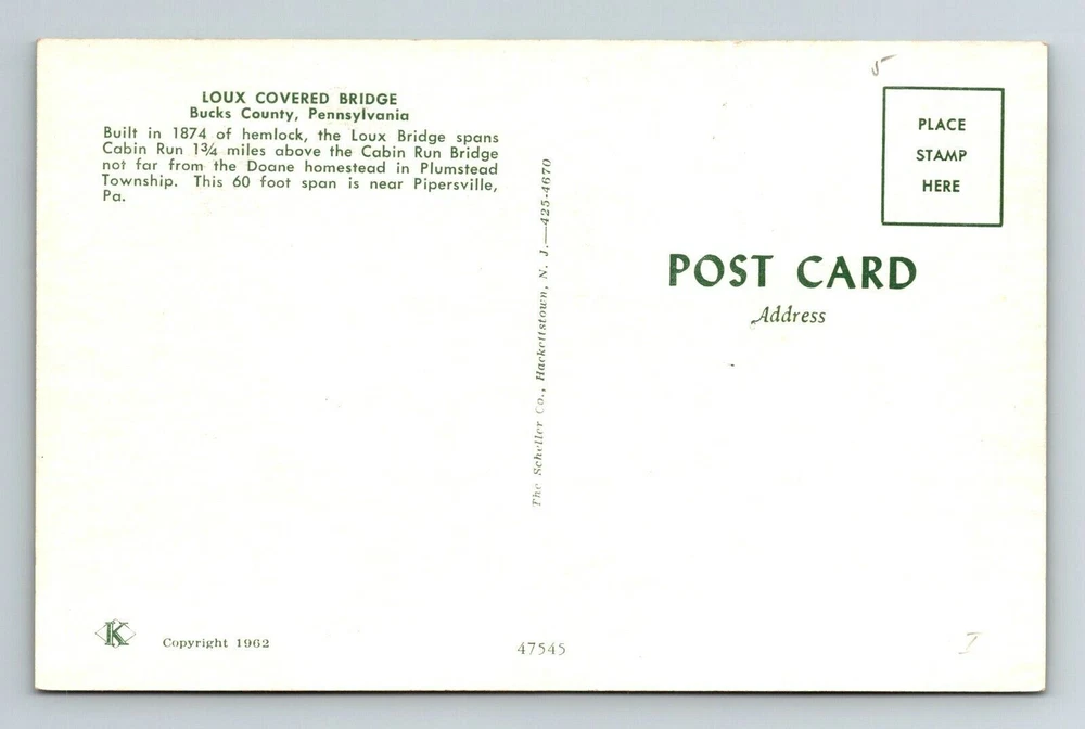 Bucks County PA-Pennsylvania Loux Covered Bridge Scenic View Vintage Postcard