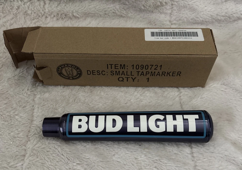 Crafted for enthusiasts of beer memorabilia, this Bud Light Aluminum Logo Beer Tap Handle is a must-have addition to your collection. The 8.5-inch tall handle features the iconic Bud Light logo, making it a standout piece for any home bar or breweriana display. With its sturdy aluminum construction, this tap handle is designed for durability and longevity. It's a genuine piece of breweriana, reflecting the rich tradition of beer culture. Ideal for those who appreciate the craftsmanship behind beer-related collectibles. Box open for pictures