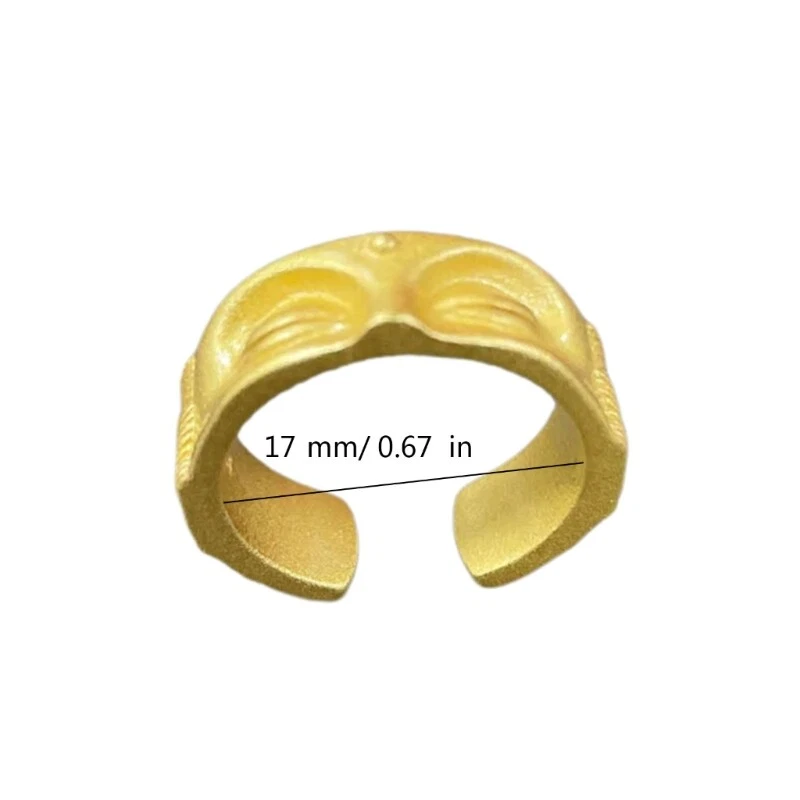 Features: Add a touch of uniqueness to your with this extraordinary buddhas face shaped accessory, meticulously crafted from alloy for a comfortable and smooth The special coating ensures long lasting wear and prevents fading, making it a dependable choice. The distinct face shape symbolizes good fortune and happiness. Suitable for all genders, this accessory appeals to fashion enthusiasts who appreciate individuality in their jewelry choices. It caters to individuals seekings expression and a taste for distinctiveness. Whether for everyday occasions, social gatherings, this accessory adds a touch of charm to any outfit, allowing you to showcases your unique easily. Elevates your fashion game with this face shaped accessory, a choice for those who want to make a statement. It can be suitable or a special treat for yourself. Specifications: Size:Approx.17mm/0.67inch Color:Gold/Silver/Black Weight:2g Package Includes: 1Pc Rings note: 1.Please allow 1-2cm errors due to manual measurement, make sure that you do not mind before you order. 2.Due to the difference between different monitors, the picture may not reflect the actual color of the item.
