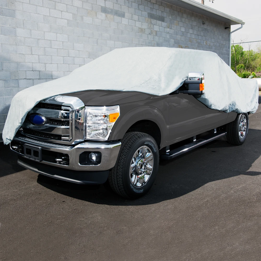 eBay Parts Center Template 1 Budge Protector V Truck Cover Fits Standard Cab Long Bed up to 19'9" Long SELLER & PAYMENT INFORMATION Seller name : budgeindustries See our other listings CUSTOMER SUPPORT If you have questions about the product or your order please contact us via eBay Messages for assistance. Thank you. Business Hours: Mon-Fri 8:30am-8pm EST SHIPPING & HANDLING Shipping Service: Please refer to shipping section Shipping Cost: Please refer to shipping section Order Processing Time: 4 business days Part #: 5LTF4 ABOUT THE PART The Protector V truck cover features 5 ultrasonically welded layers to ensure 100% waterproof protection. This truck cover is made from three layers of polypropylene that rests on top of a fully waterproof membrane. The inner most layer is made from a nonabrasive fleece material, so you wont have to worry about scratching your trucks paint. The Protector V is UV resistant, waterproof, breathable and durable, making it ideal for all-weather protection. Cover comes with a built in strap and buckle system. This Budge Protector V Truck Cover | Fits Truck with Long Bed Extended Cab Pickups ABOUT THE SELLER Budge Industries is known as ‘the original car cover company’ for good reason: we invented the car cover in 1940. By using the most advanced materials to make superior products, we continue to be the most recognized and respected name in the cover industry. We manufacture and distribute protective covers for boats, cars, trucks, RVs, motorcycles, UTVs, ATVs, as well as for boats, snowmobiles, patio furniture and more. Our products can be found in over 25,000 retail stores in the United States and Canada. We are also a key supplier of protective covers for U.S. government programs, including developing covers to protect U.S. military aircrafts. Start protecting your pride and joy with a Budge cover today. RETURN POLICY Return shipping paid by: Buyer Item must be returned within: 30 Days Refund will be given as: Money back or replacement (buyer's choice) BudgeCovers.com will accept return requests of items purchased within 30 days of receipt. Following the 30 day period, we cannot process any returns or exchanges for any reason. BudgeCovers.com cannot accept returns of Budge Industries covers purchased through any other outlet. If you are trying to return a product purchased from a different retailer please contact them at the point of purchase. BudgeCovers.com will only accept one return on an original order. In the event that you receive an exchange or replacement, we will not accept this replacement for a refund or exchange for any additional items. WARRANTY Warranty Duration: No Warranty Warranty Type: Manufacturer Warranty