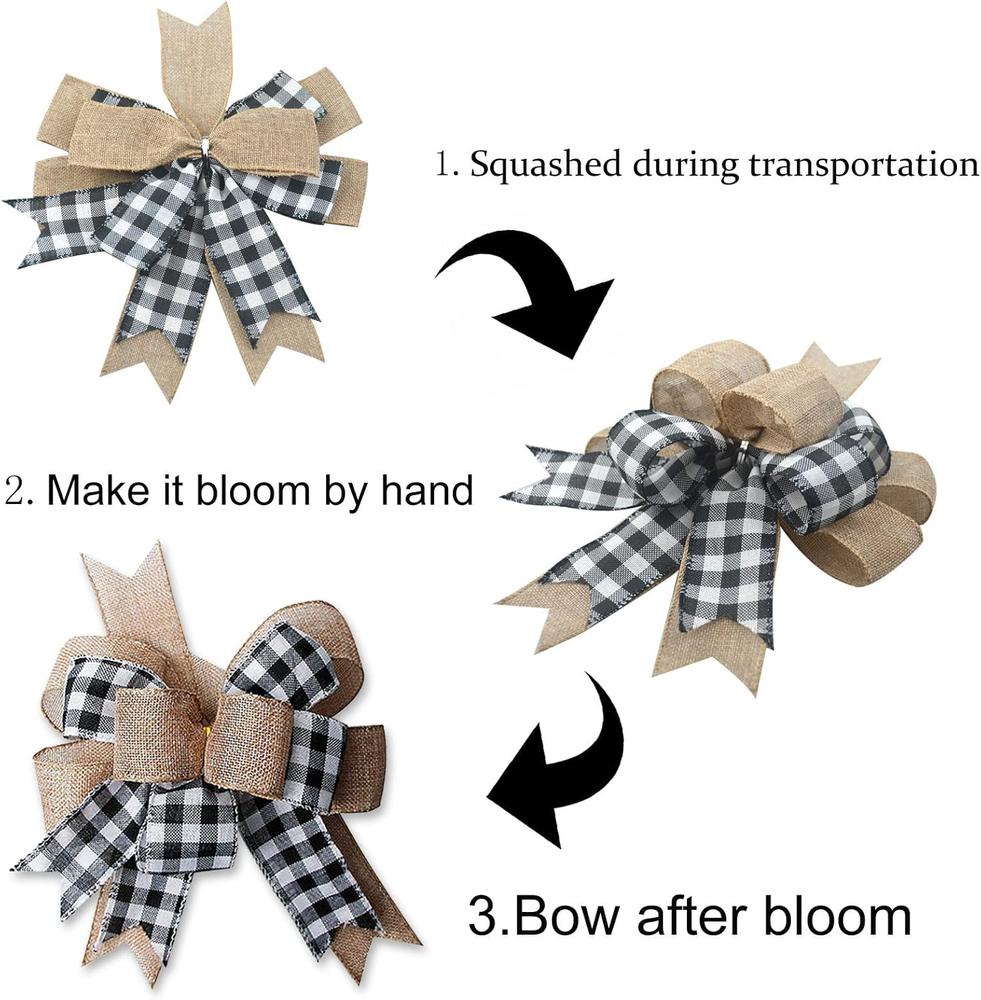 Store New Arrivals Add to Favorite View Feedback Buffalo Plaid Burlap Bows for Wreath 2 Pack,12”X9.4”Large Rustic Farmhouse Decor Tree Topper Check Bow Decorations for Fall Wedding Holiday Party Wall Home Front Door Decorative(Black&White) Description Diameter 12 Inches Style Classic, Rustic Color White Brand Hongsome Material Polyester, Iron Country of Origin China Batteries Required? No Item Weight 2.2 ounces Theme Holidays Recommended Uses For Product Home decoration, party decoration, wedding decoration, gift wrapping Department womens Occasion Christmas Size approx: 12in x 9.4in/30cm x 24cm Is Discontinued By Manufacturer No Product Dimensions 9.4"D x 12"W x 3.5"H Manufacturer Hongsome ʚɞʚɞ Unique Material: The buffalo plaid burlap bow is made of polyester fabric and burlap material. The unique edge fine iron wire design that can Manually restore bloom even if squashed,and it never wither. ʚɞʚɞ Larger Zise: These Rustic Christmas Tree Topper Bows approx: 12in x 9.4in/30cm x 24cm. Plus size bow is more conspicuous and Get more compliments. ʚɞʚɞ Classic Design: The Buffalo Check Bows are featured with classic buffalo plaid pattern, decorated with black, white and natural burlap colors, which connect classic design and rustic style into one; They are full of festive feeling in appearance, can highlight the warm atmosphere of the festival after being applied. ʚɞʚɞ Applicable Scenes: Versatile decoration for your home decorations, you can tie the spring bow to your Christmas trees, wreaths, windows, doors, walls, stairs, fences, fireplace, etc. add elegance and beauty to your home, office, yard, party, wedding, picnic, farmhouse decor,holiday and other occasions. ʚɞʚɞ Great Gifts:These rustic plaid burlap bows will be an ideal choice for gifts giving, you can directly prepare these beautiful bows as crafting gifts for your friends who love DIY, or use these Decorative Bows to decorate your holiday gifts and send the gifts to your family, lover, relatives, colleagues or other people Product Description Hongsome Buffalo Plaid Burlap Bows for Wreath 2 Pack,12”x9.4”Large Rustic Christmas Tree Topper Bow Decoration for Wedding Holiday Birthday Party Wall Home Front Door Ornaments(Black&White) Features 1.Handmade 2.Size approx: 12in x 9.4in/30cm x 24cm 3.Black white buffalo plaid and burlap 4.edge fine iron wire design 5.Manually customize the flower shape 6.Bows are suitable for any occasions 7. Designed for daily use and holiday decorations 8.Add a festive atmosphere for your holiday Bows for wreath Christmas tree topper bow Decoration fireplace bows for wreaths outdoor ABOUT US We offer the best prices around on high quality products. Our E-store includes media such as books, movies, music and games while offering electronics, toys, sporting apparel, clothing, tools, general home, garden items and more. SHIPPING We are always working hard to ensure your package arrives as soon as possible. Please understand that some factors like weather, high postal traffic, and the performance of shipping companies are outside of our control. We offer free shipping to the lower 48 states and ship within 2 business days of payment, usually sooner. We do not accept P.O. Boxes. Please provide a physical address. RETURNS We offer a 30-Day Return Policy on items which you are not completely satisfied with. You have the option for a full-refund or an exchange of the item. No returns are available on items shipped outside of the USA. PAYMENT We accept PayPal. CONTACT US This page content is yet to come Please ad us to your favorite seller and visit again later Thank You