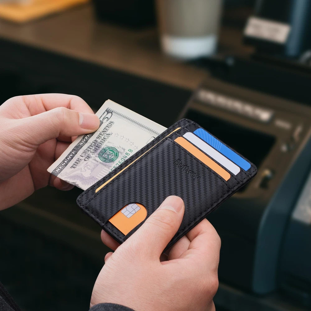 This wallet is sleek, compact, and perfect for front-pocket carry. The RFID blocking gives peace of mind, and the quality leather feels premium. Holds just the essentials without bulk—love the minimalist design! Highly recommend for anyone who wants style and function.