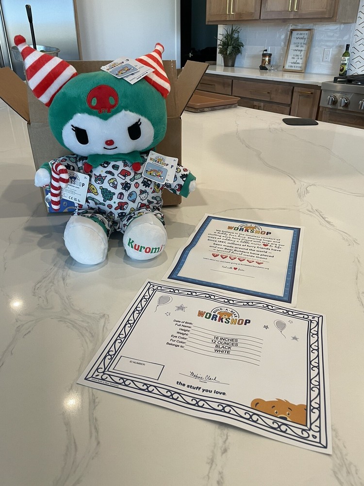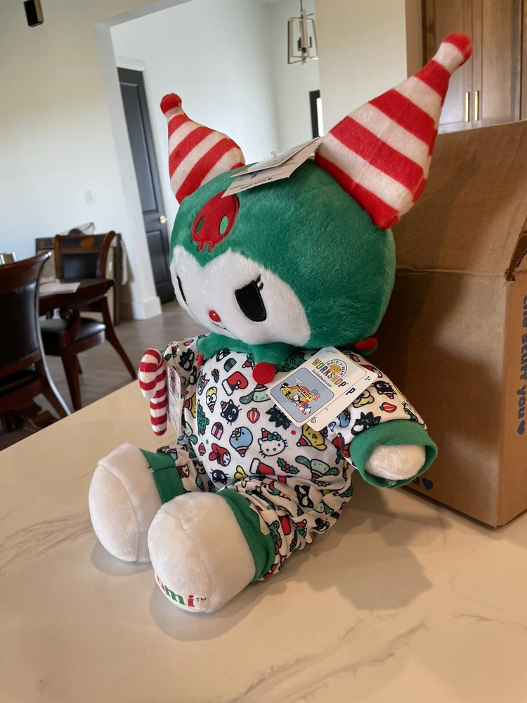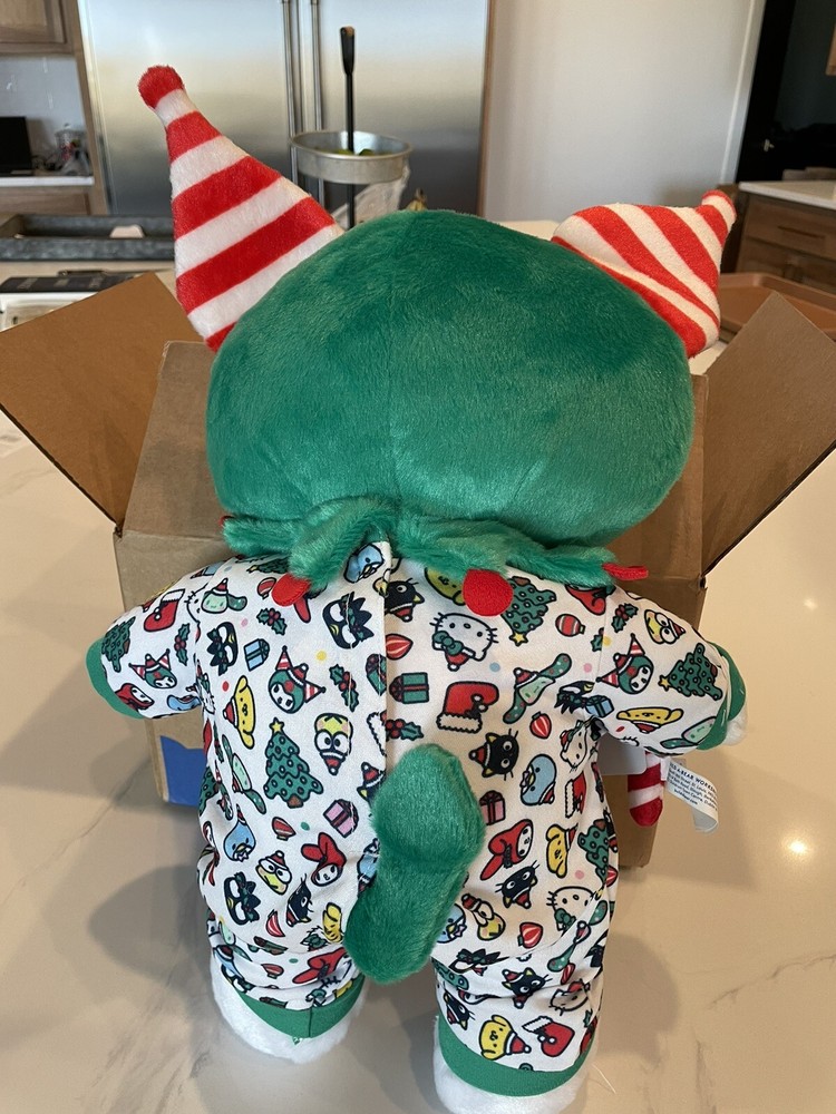 Get ready for the holiday season with this adorable Build-A-Bear Workshop Kuromi plush toy! This cuddly friend is dressed in festive holiday pajamas and holding a delicious candy cane. With her black and white color scheme and Hello Kitty character family, she is the perfect addition to any stuffed animal collection. This brand new plush toy is perfect for Christmas occasions and is sure to bring joy to any child or adult alike. Don't miss out on the chance to add this cute and charming Build-A-Bear Workshop Kuromi to your collection! Brand new with tags!!